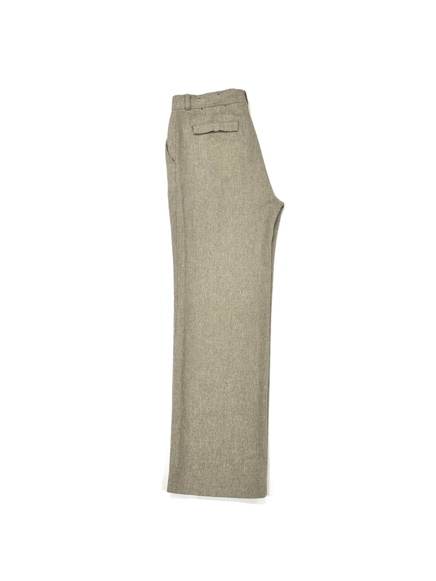 タック無し、細いベルトループ、ミニマムなスラントポケット……。