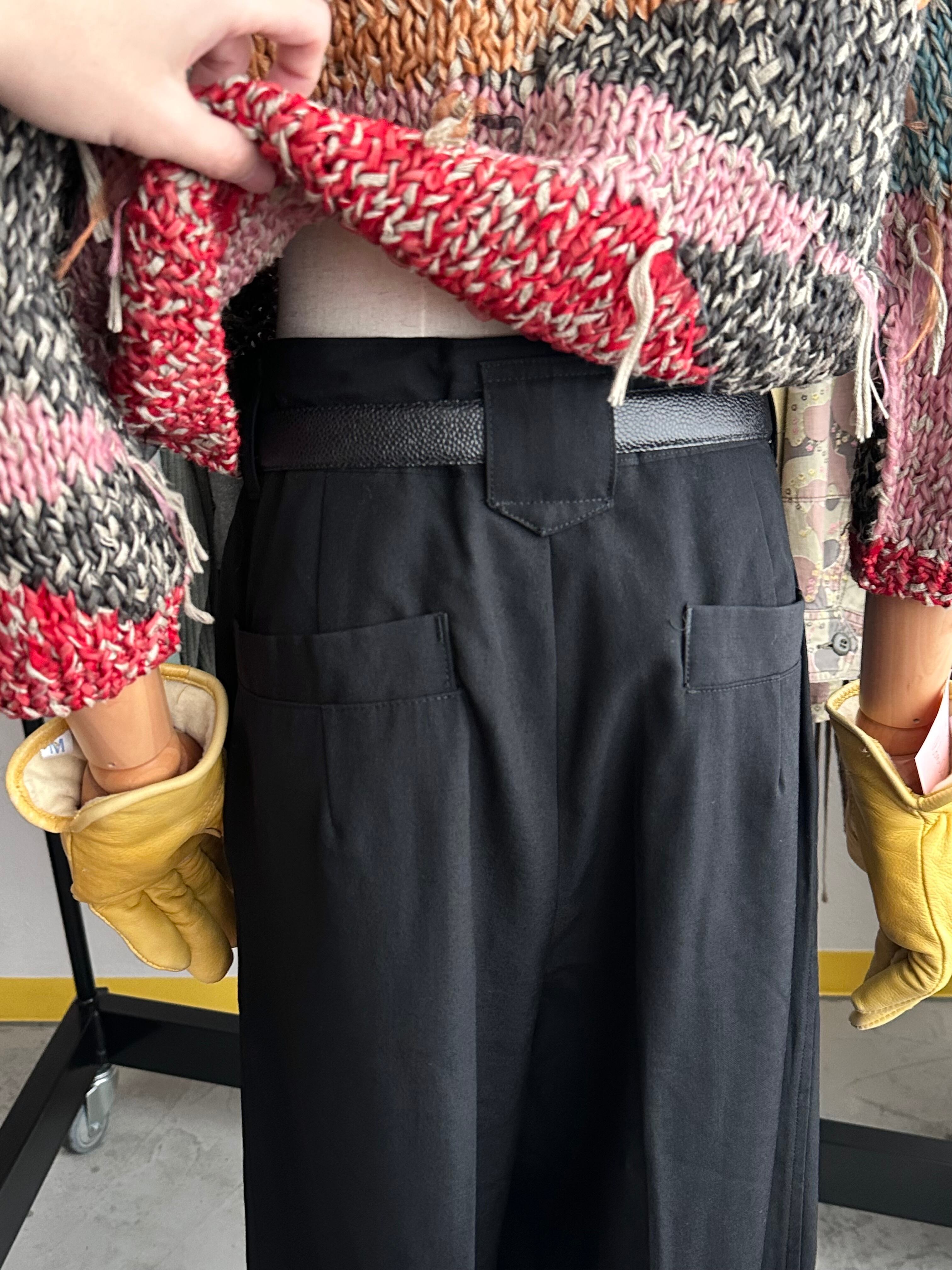 真っ黒、彩度ゼロの平織りウールで仕立てる2タックスラックス。