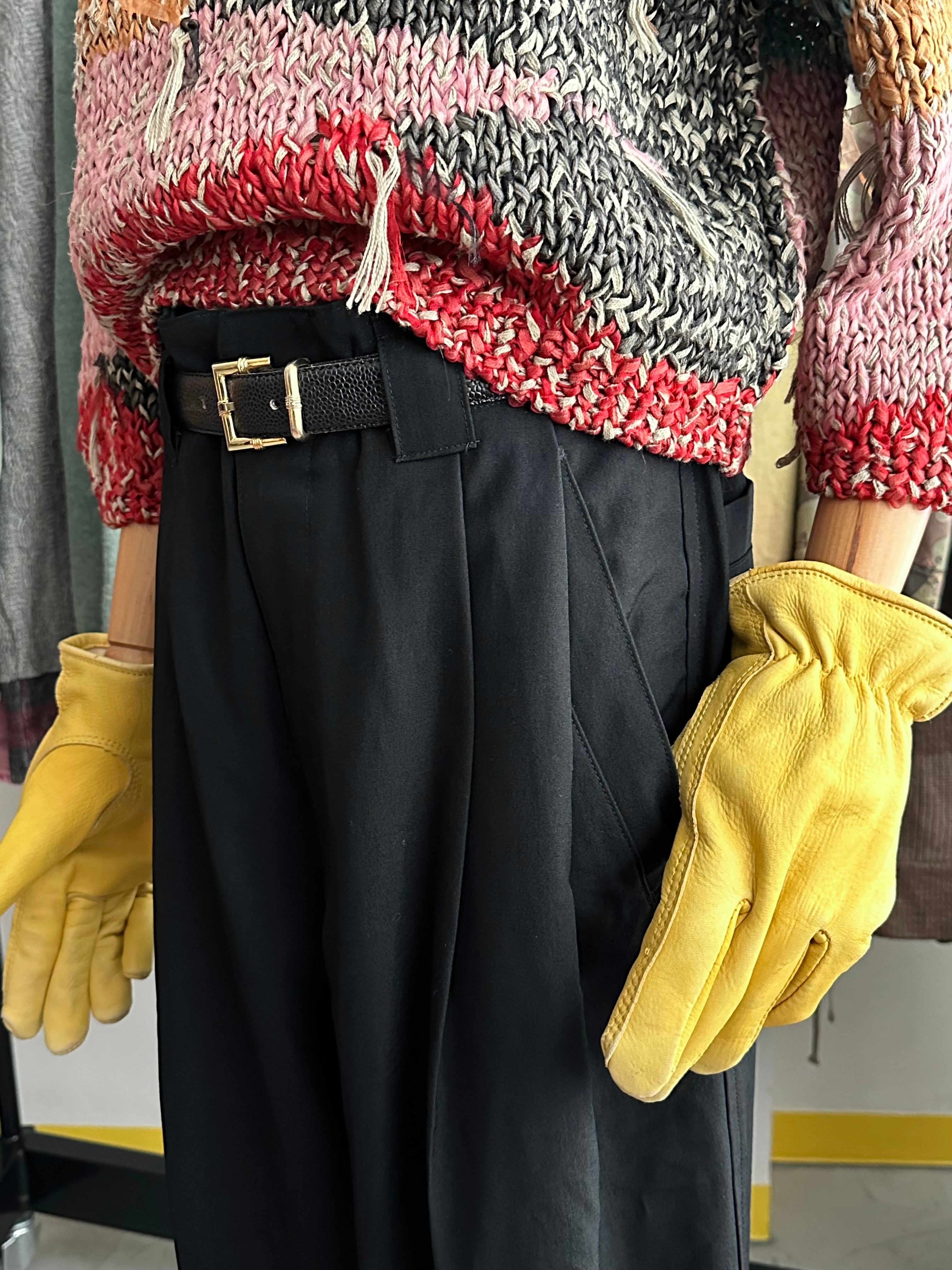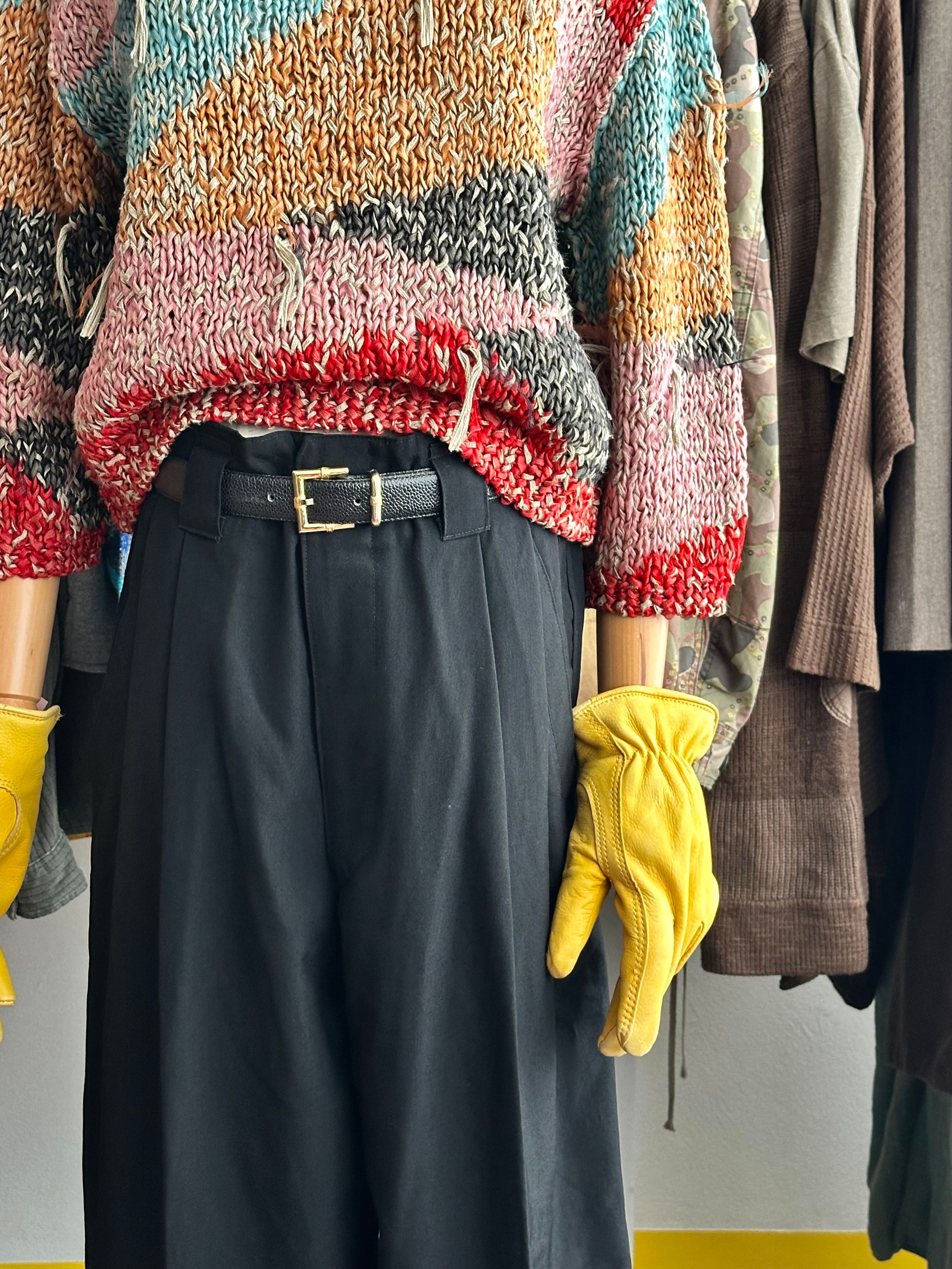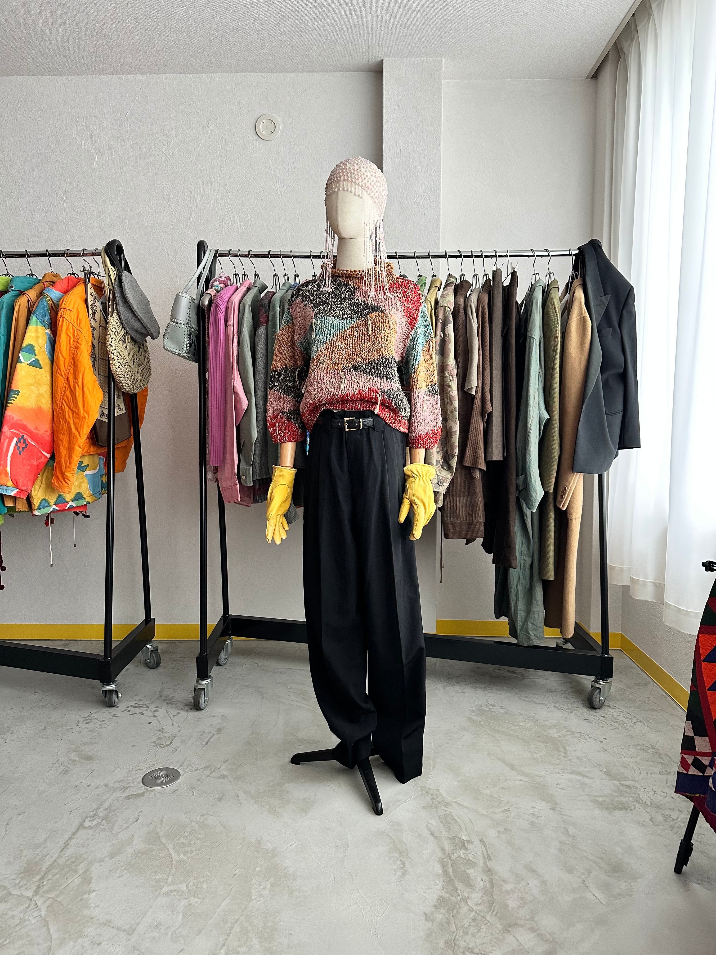 80-90's DOMON Deep_2_Tuck Cutting Black Wide Slacks