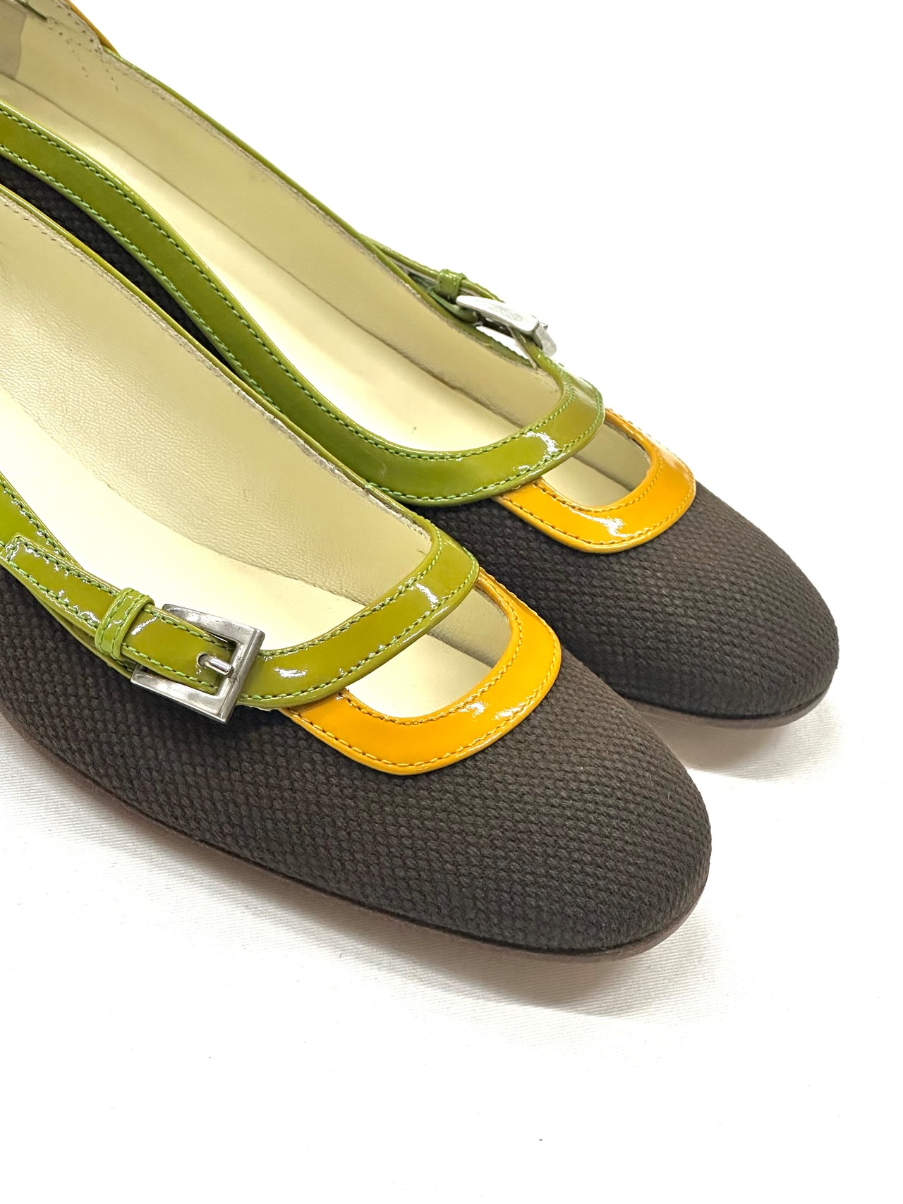 Miucciaらしい変拍子のカラーパレット。その素晴らしさは言うまでもありませんが、それらが彩るパテントレザーと組み合わされるのがコットンダックのボディ。このギャップは天才的としか言いようが無い。