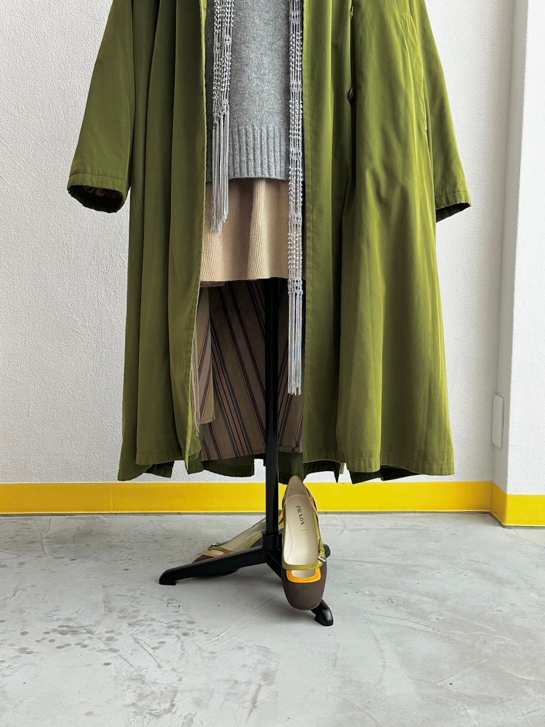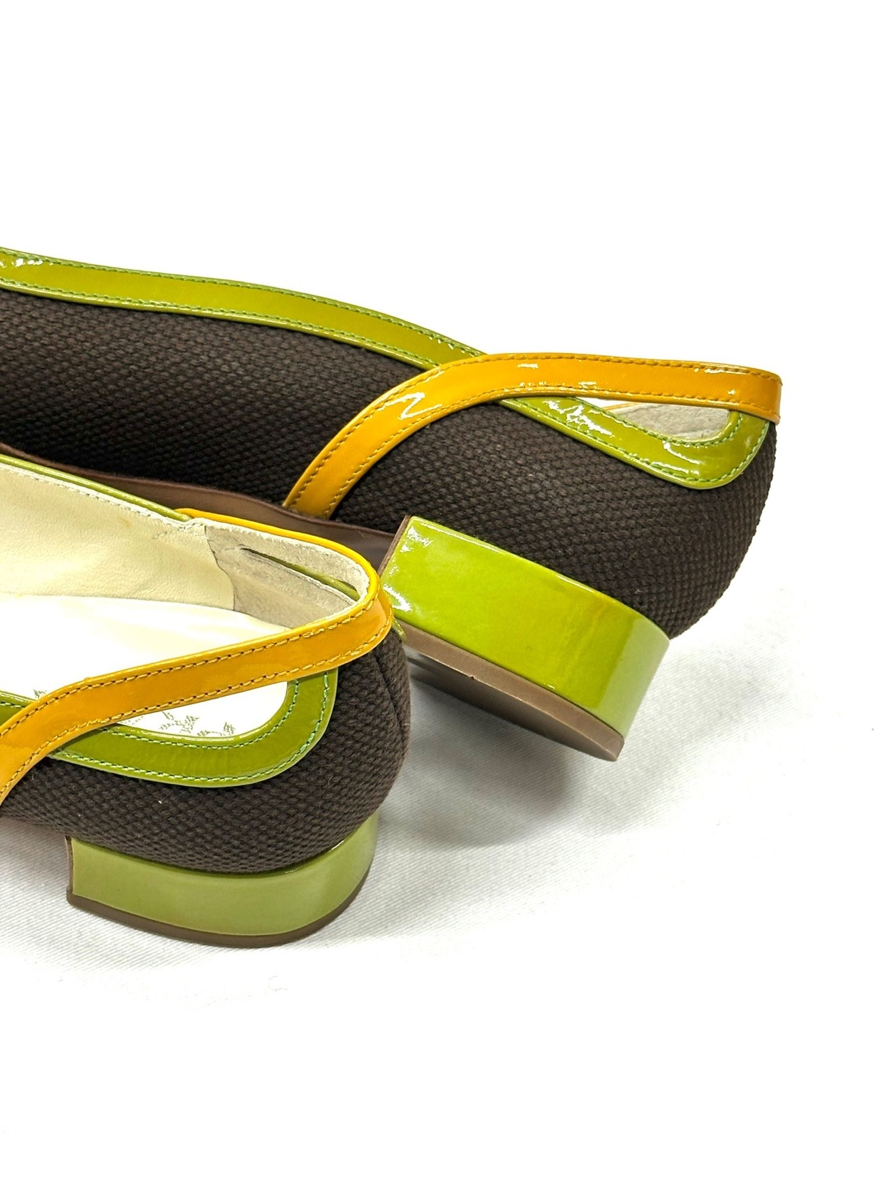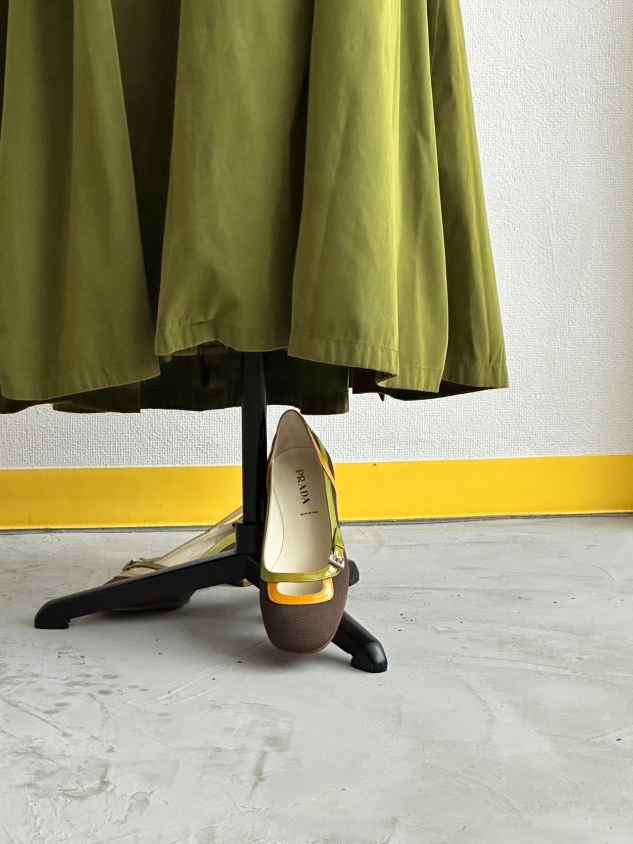 言っちゃえばカーハートとかの土臭いワークウェアに使われるような武骨なテキスタイルで、こうも女性的なソフト・パンプスを仕立てるなんて。