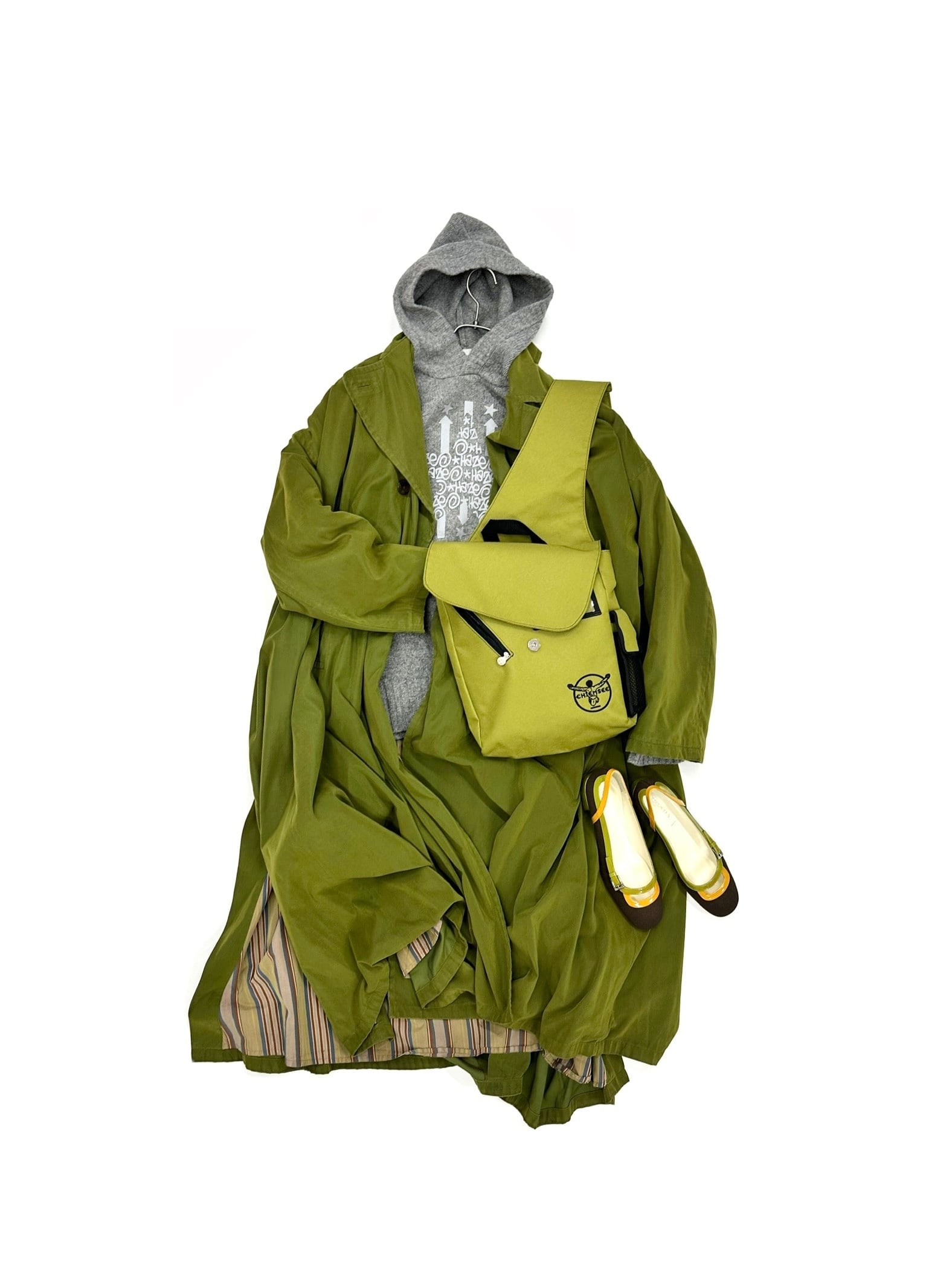 この服の第一印象を決定付けている鮮やかなピクルス・グリーン。