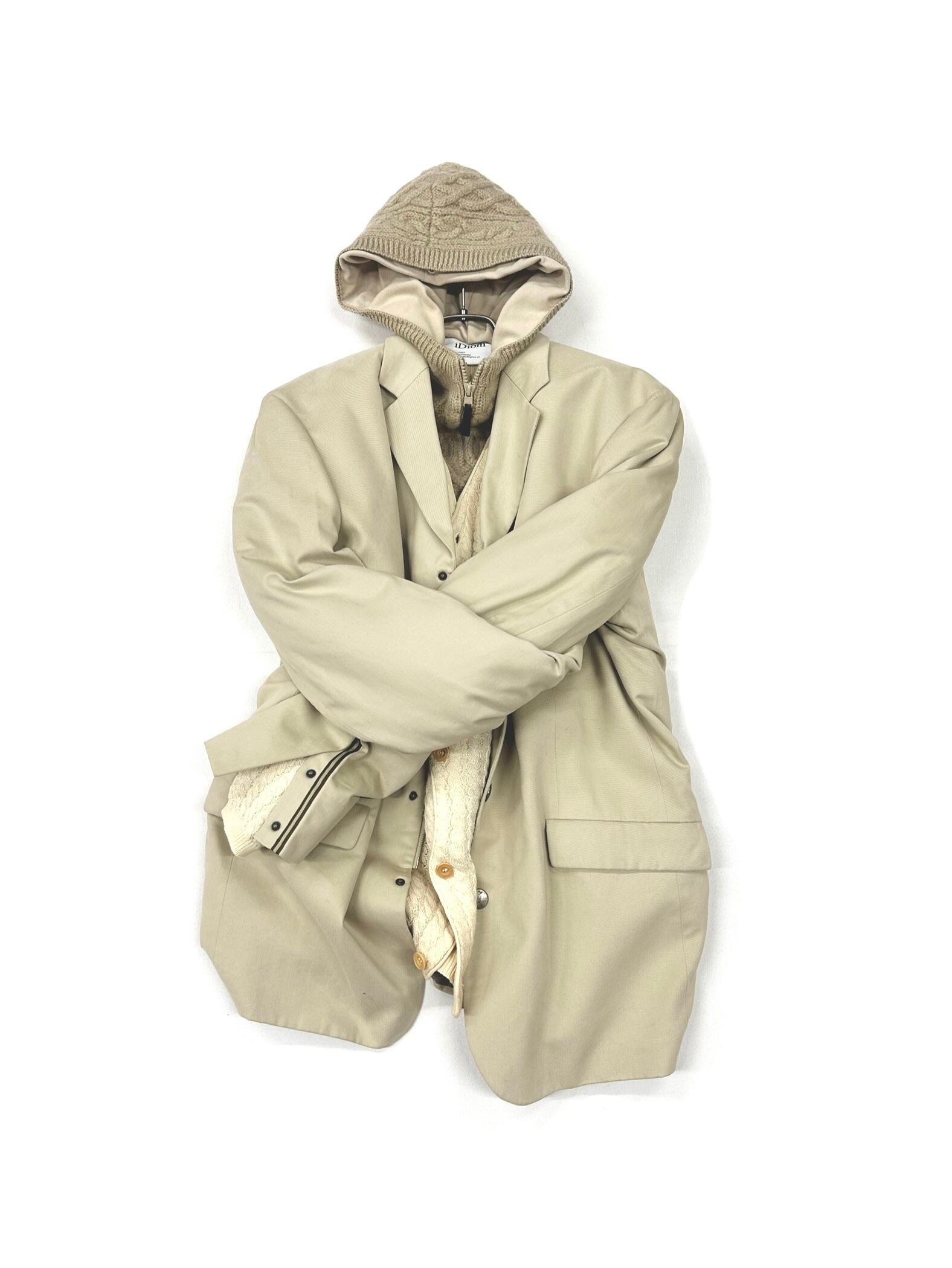 異要素同士の組み合わせで全く新しい効果を開拓する編集型デザイン……こう書くと、現代のメンズウェアの典型とも言えそうですが、やはりこの方の視点は早かった。