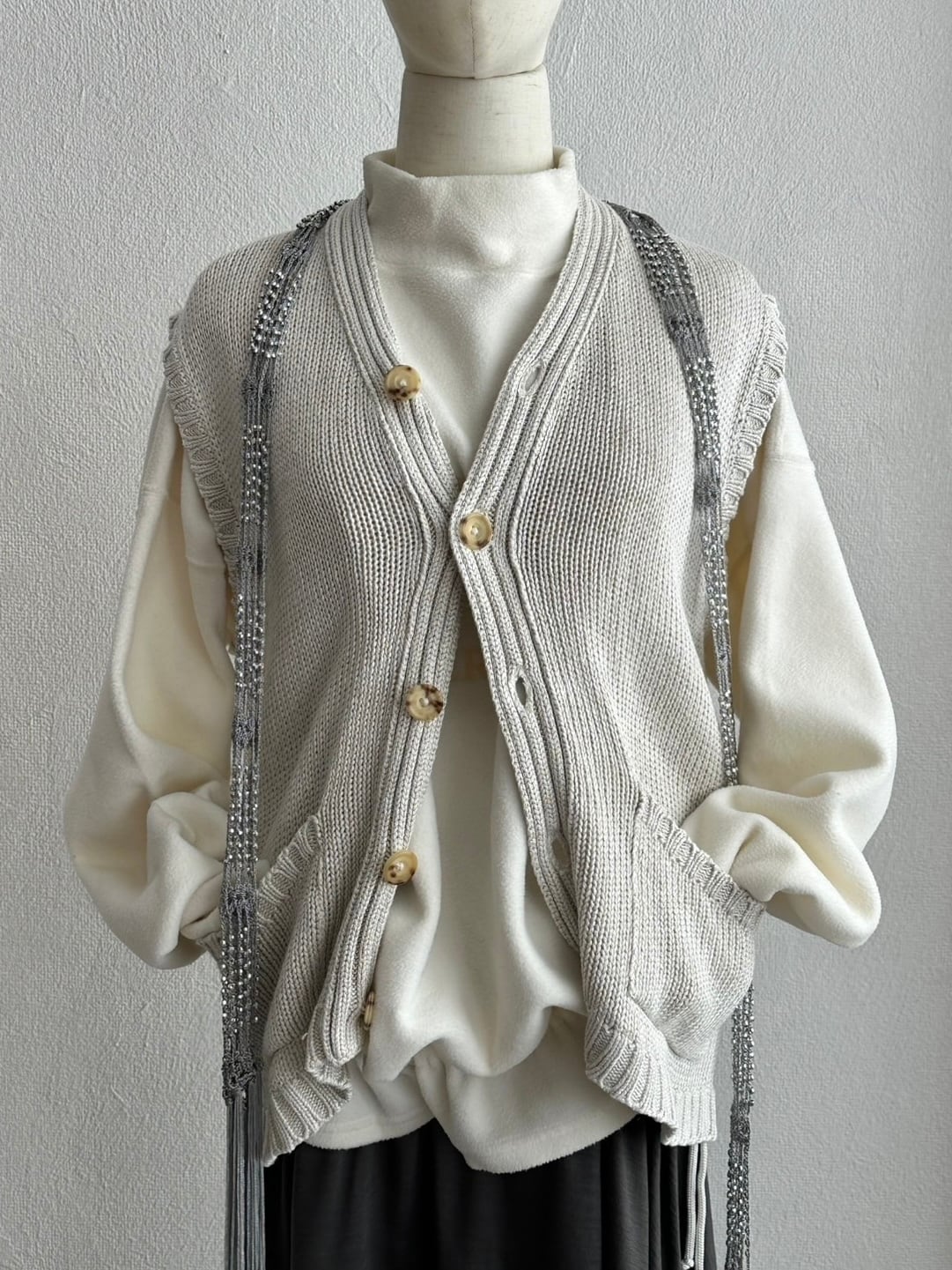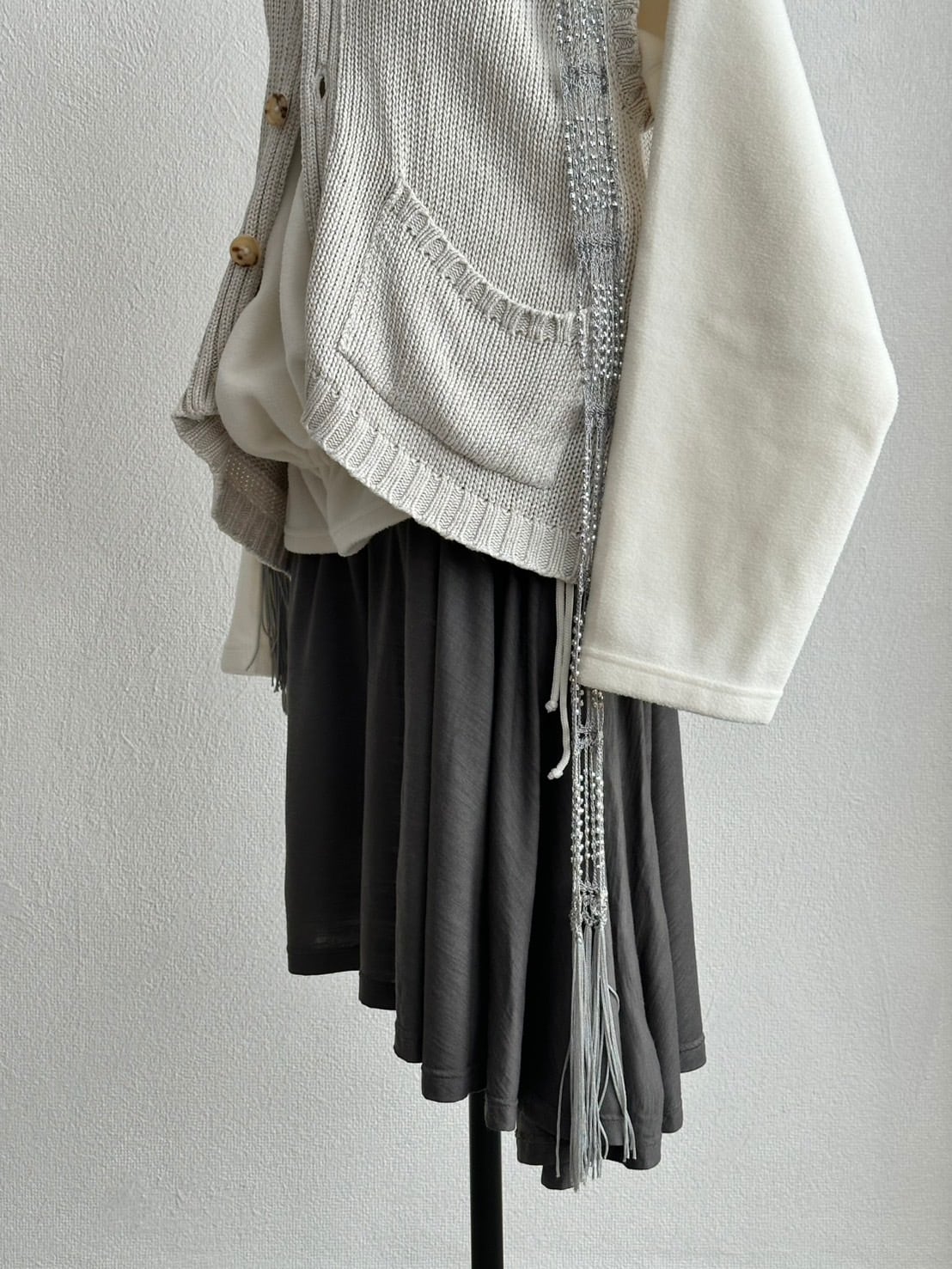 フリースとかスウェットとかデニムとか、White~Blueのグラデーションの中に異素材としてキラリと差し込んでいただくと素敵ですよ。