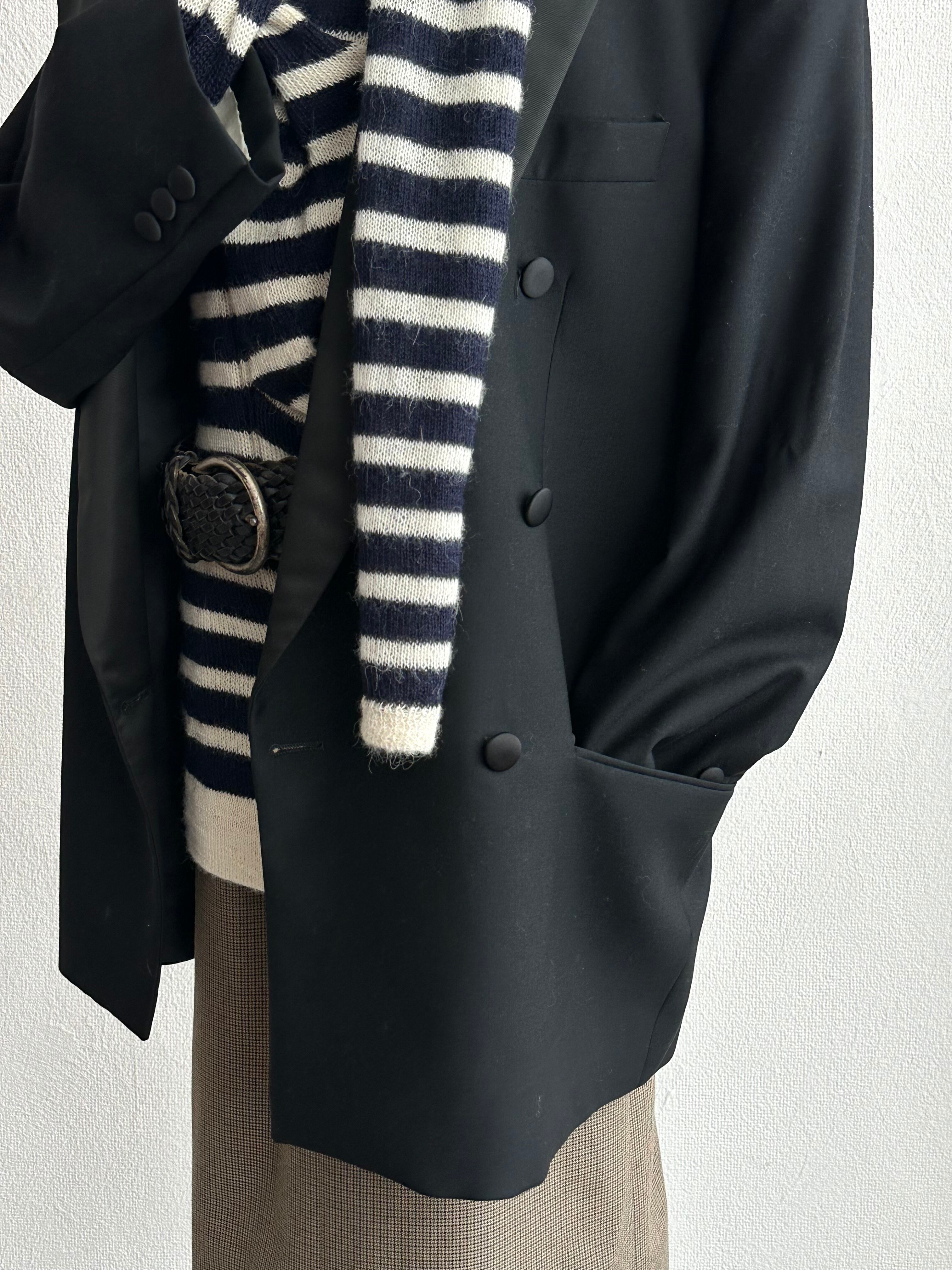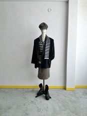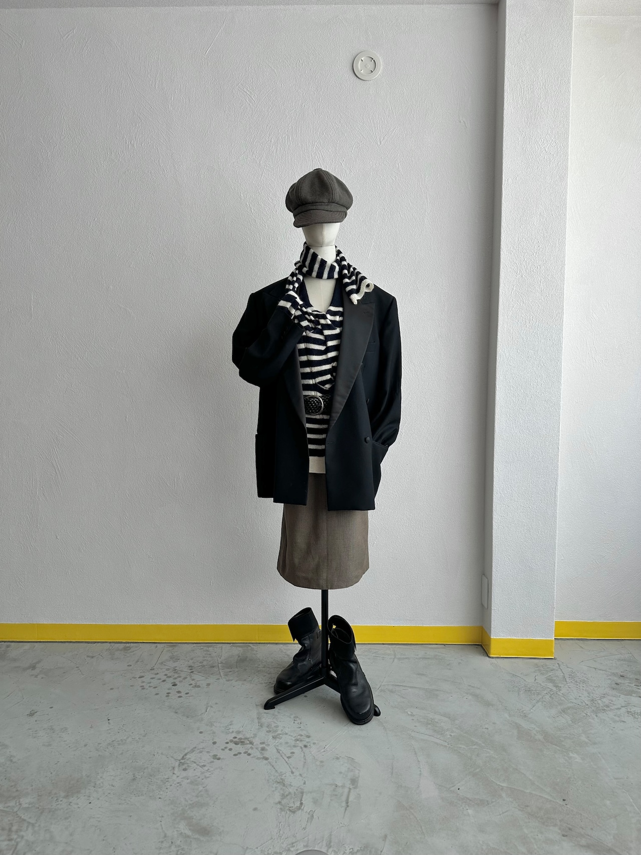 海を象徴するこのデザインをインスピレーションに、ではその「縄」模様を更に拡張解釈してみよう、と実際に洋服という平面から拡張させたデザイン。
