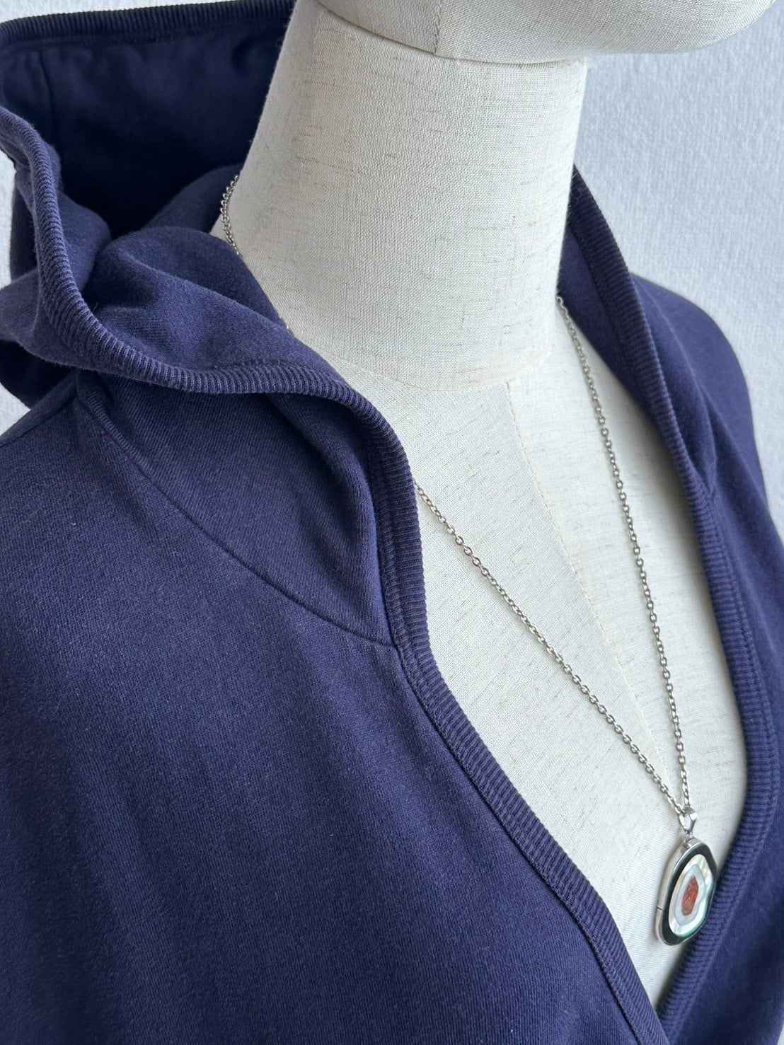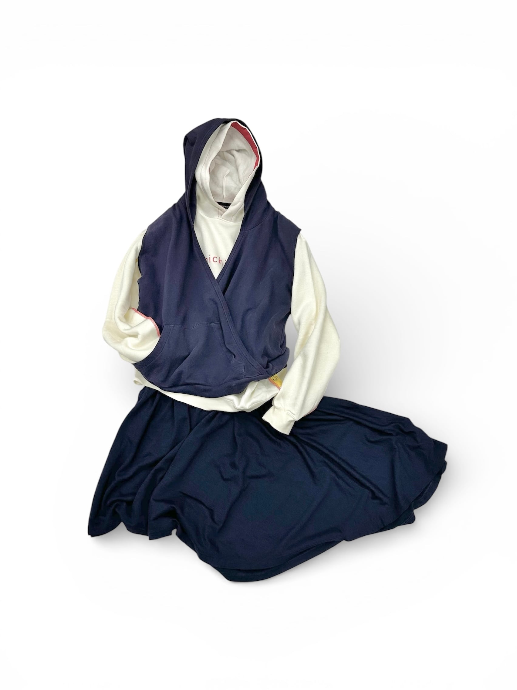 この服をカシュクールとして見た時も、パーカーとして見た時も、それぞれ全く新しいニュアンスを体感出来ます。