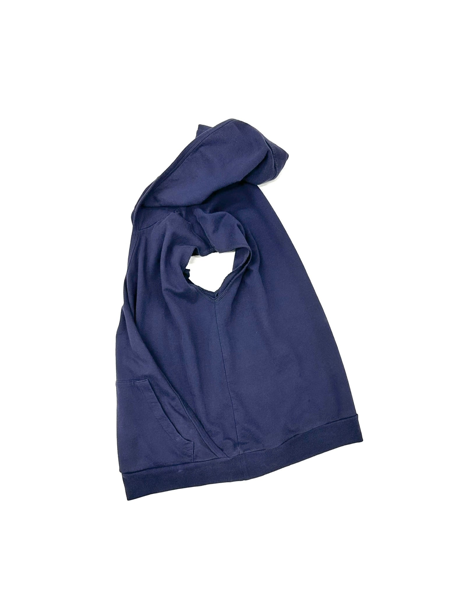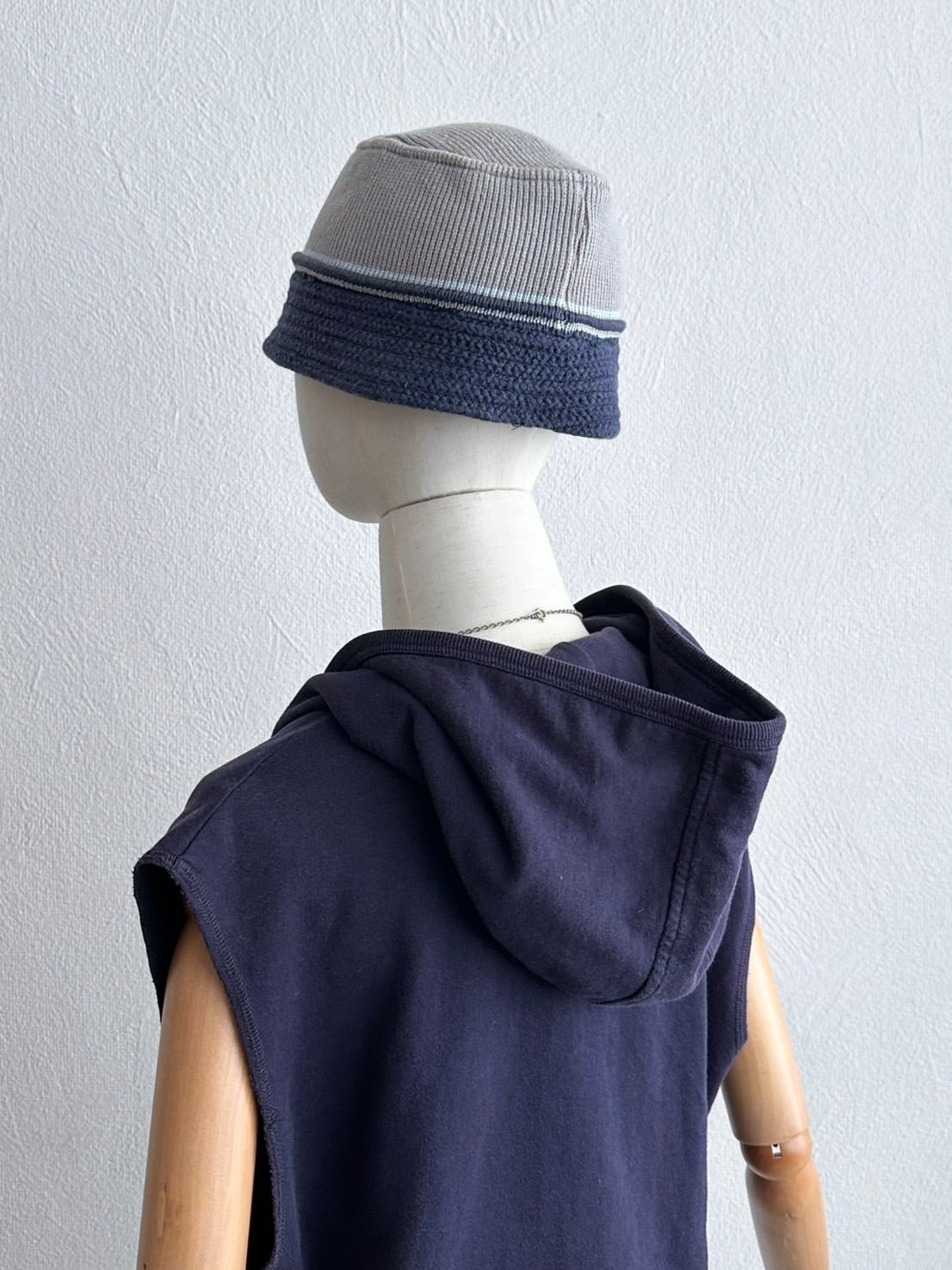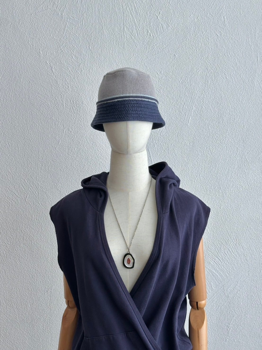ノースリーブパーカーの少年性みたいなニュアンスと、カシュクールが持つ強烈な女性性のミックス。