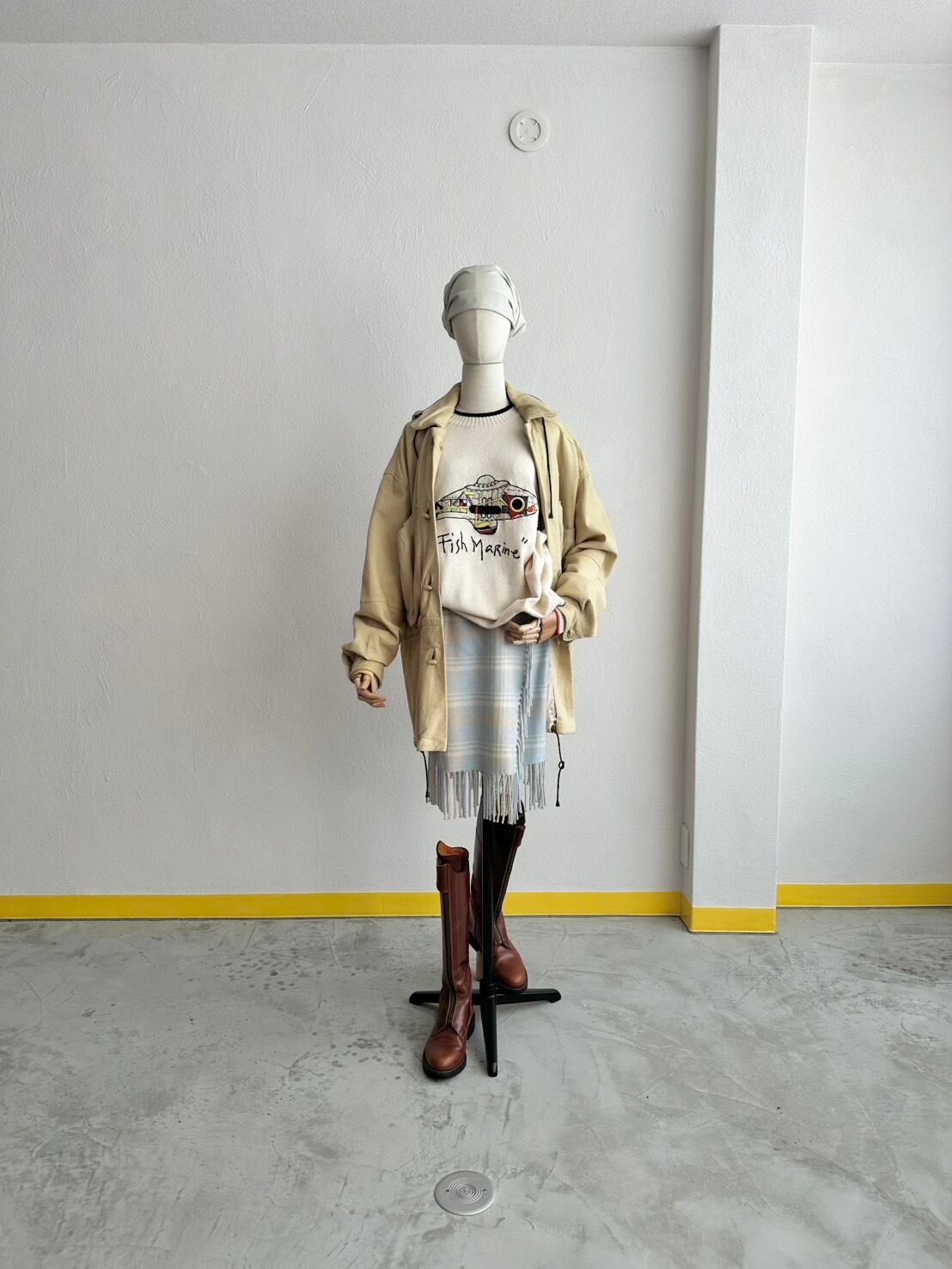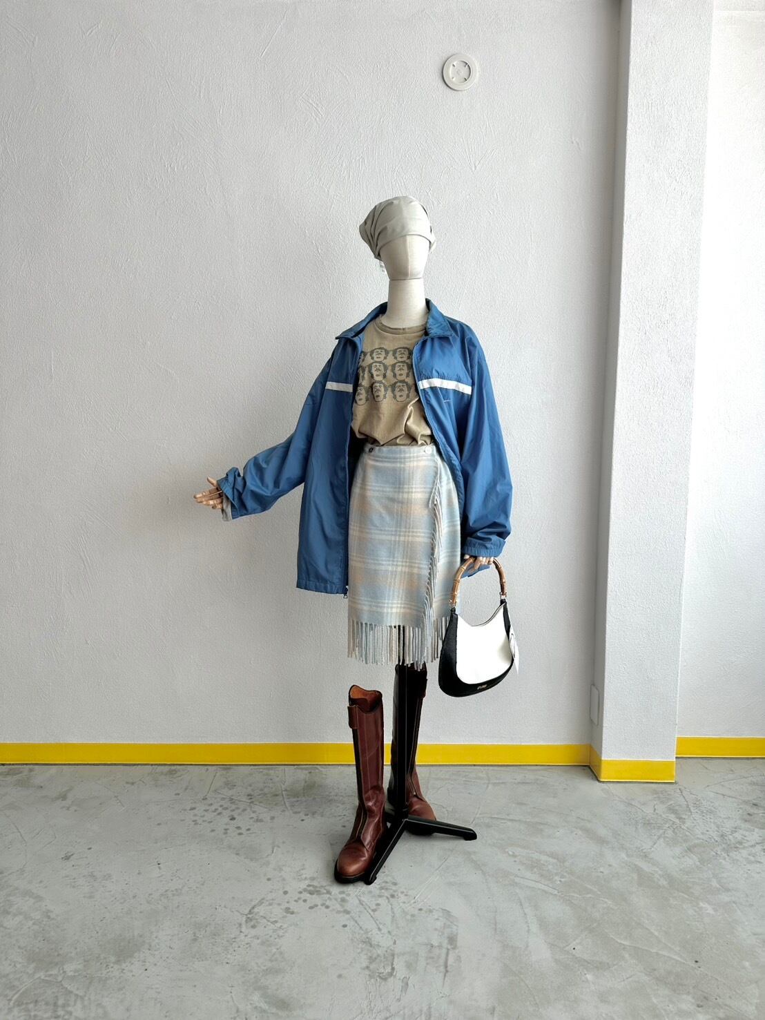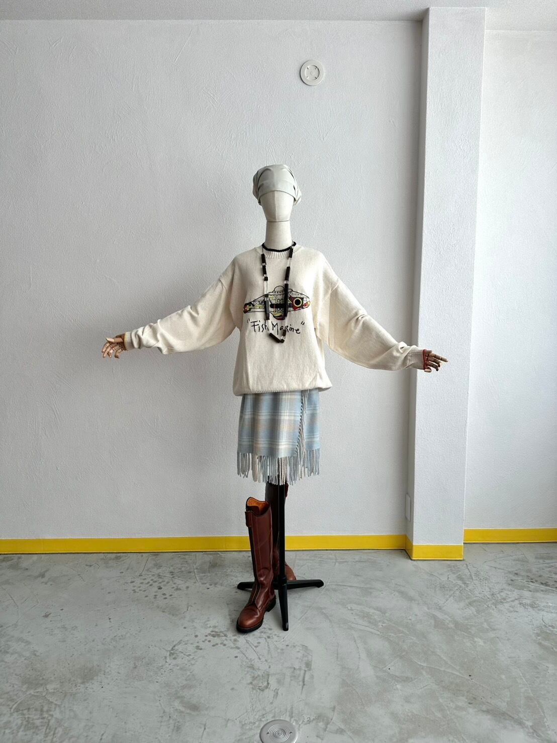 巻きスカートという構造デザイン的にも、マフラー及びブランケットを腰巻きにしちゃうような、奔放な発想からの転換だと思うのです。