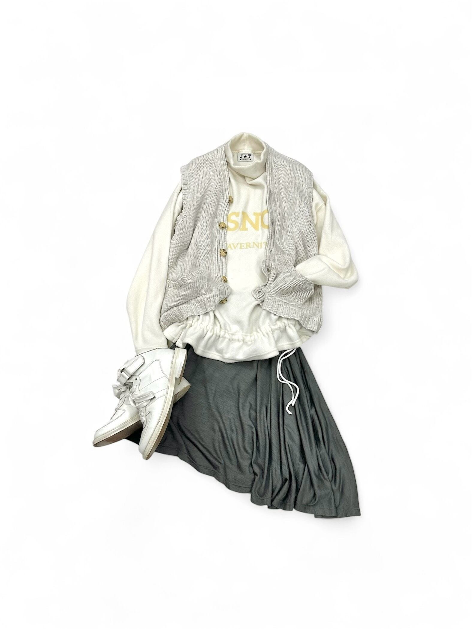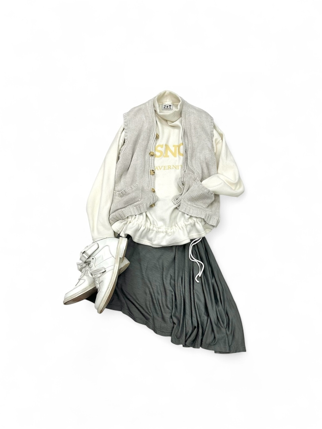 これも、スウェットパンツの感覚で履く「スウェット・スカート」のとしての提案です。