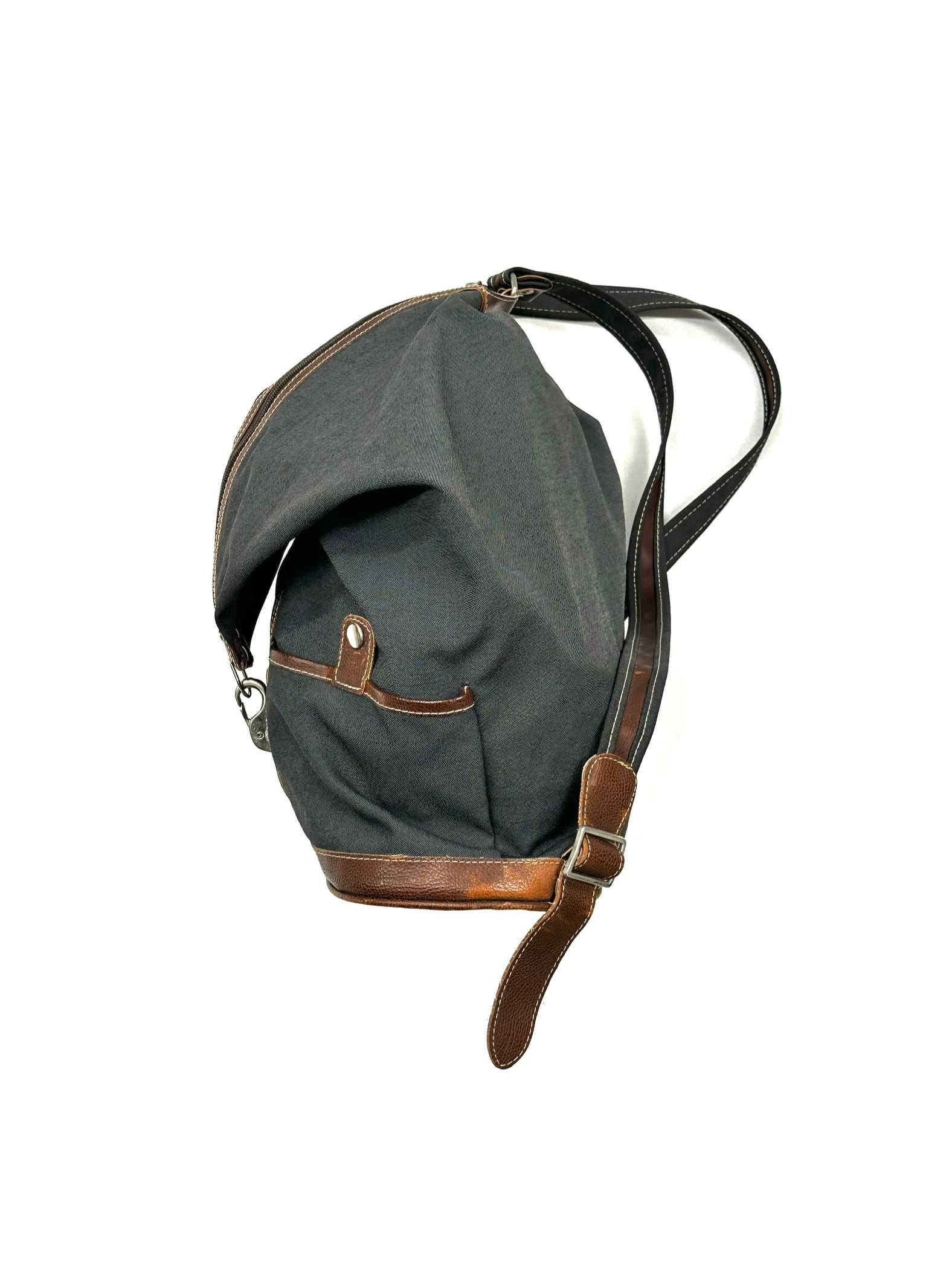 天面はファスナーの硬さによって一方向のみ垂れ下がり、リュックサックにおけるフラップに変身します。