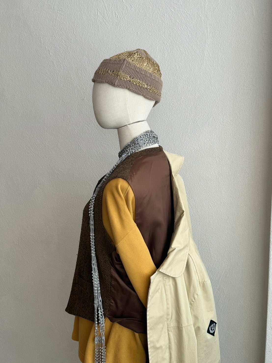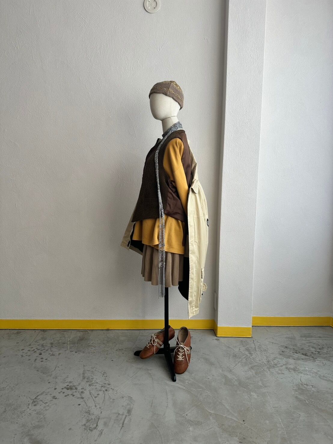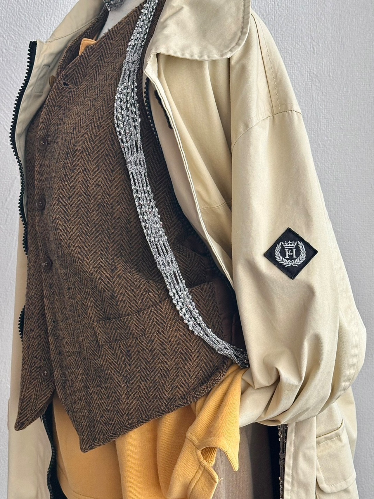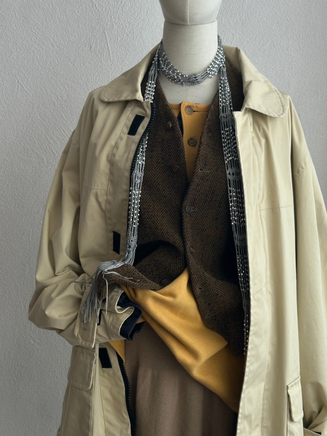 ウエストコートというポジションならではの可変的なユーティリティと、レイヤードする事そのものの楽しさがデザインされた1着です。
