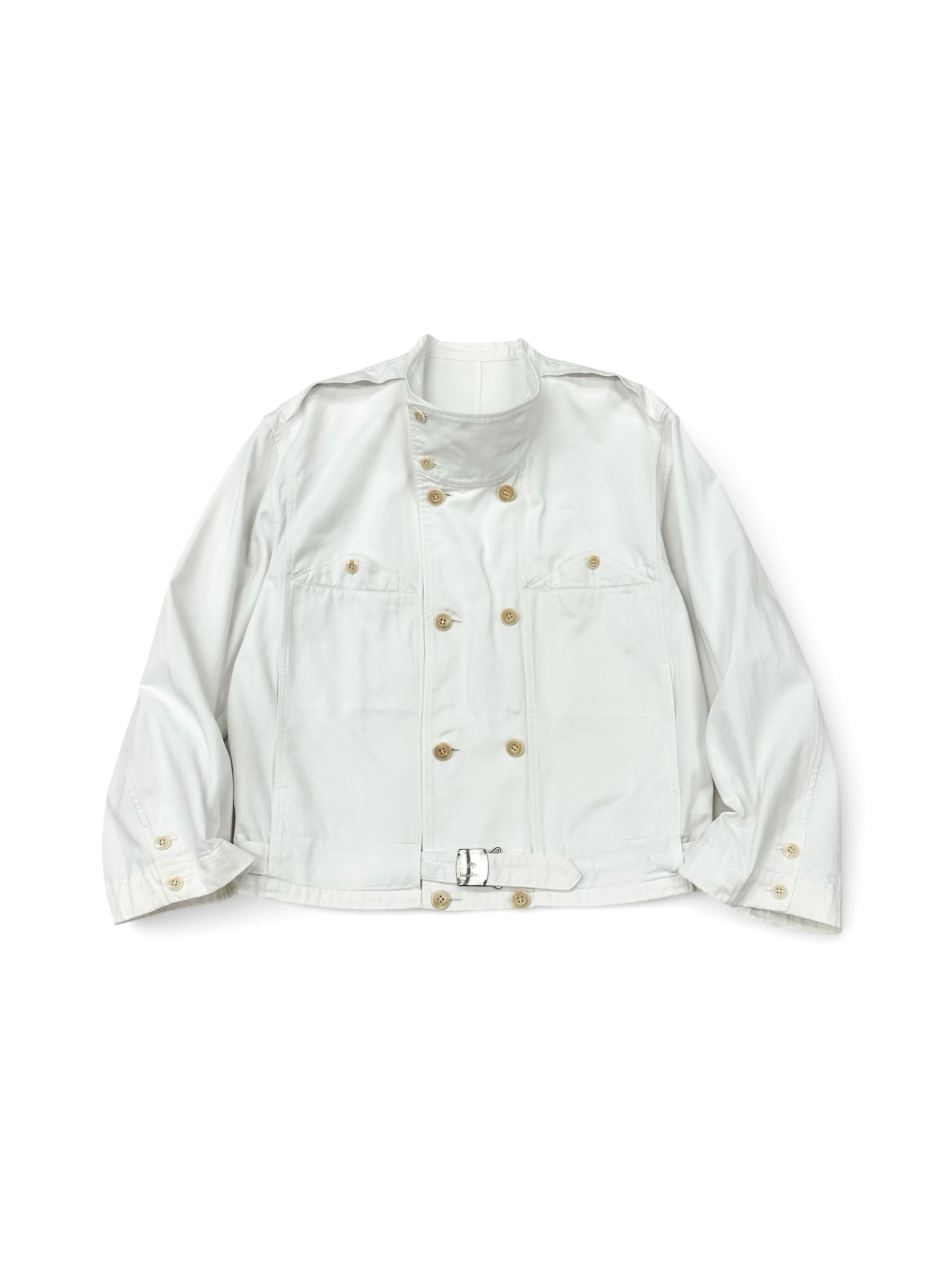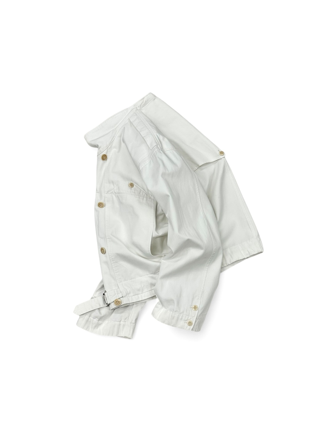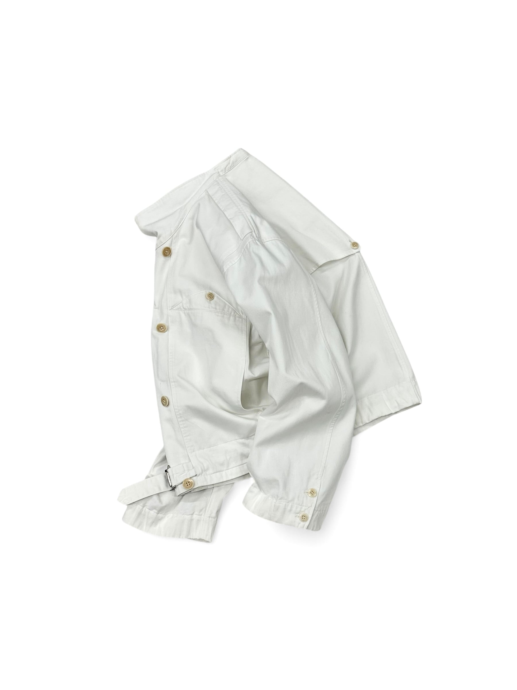 1980's LINEA FRESCA by M.ABO Cowl_Neck Cut Box_Body White Cotton JKT