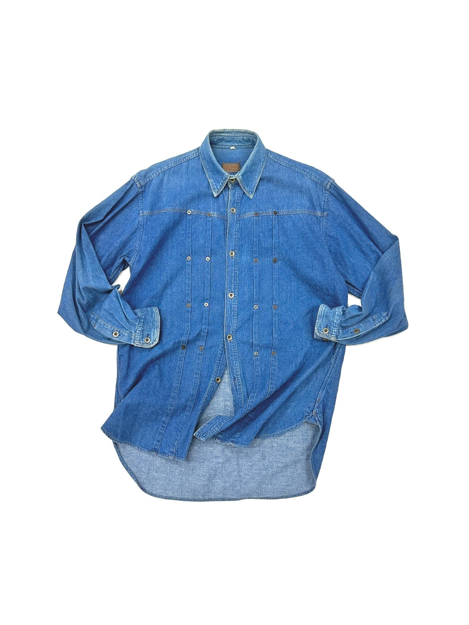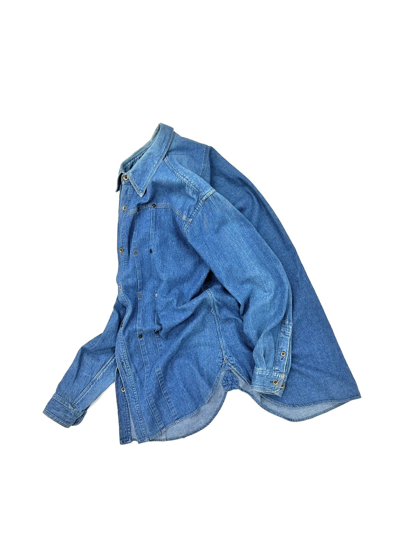 このブラウジング映えするシルエット設計の何が良いって、この上にデニムジャケットを着なくっても、このシャツだけで面白いビジュアルを完成されられるって所ですよね。