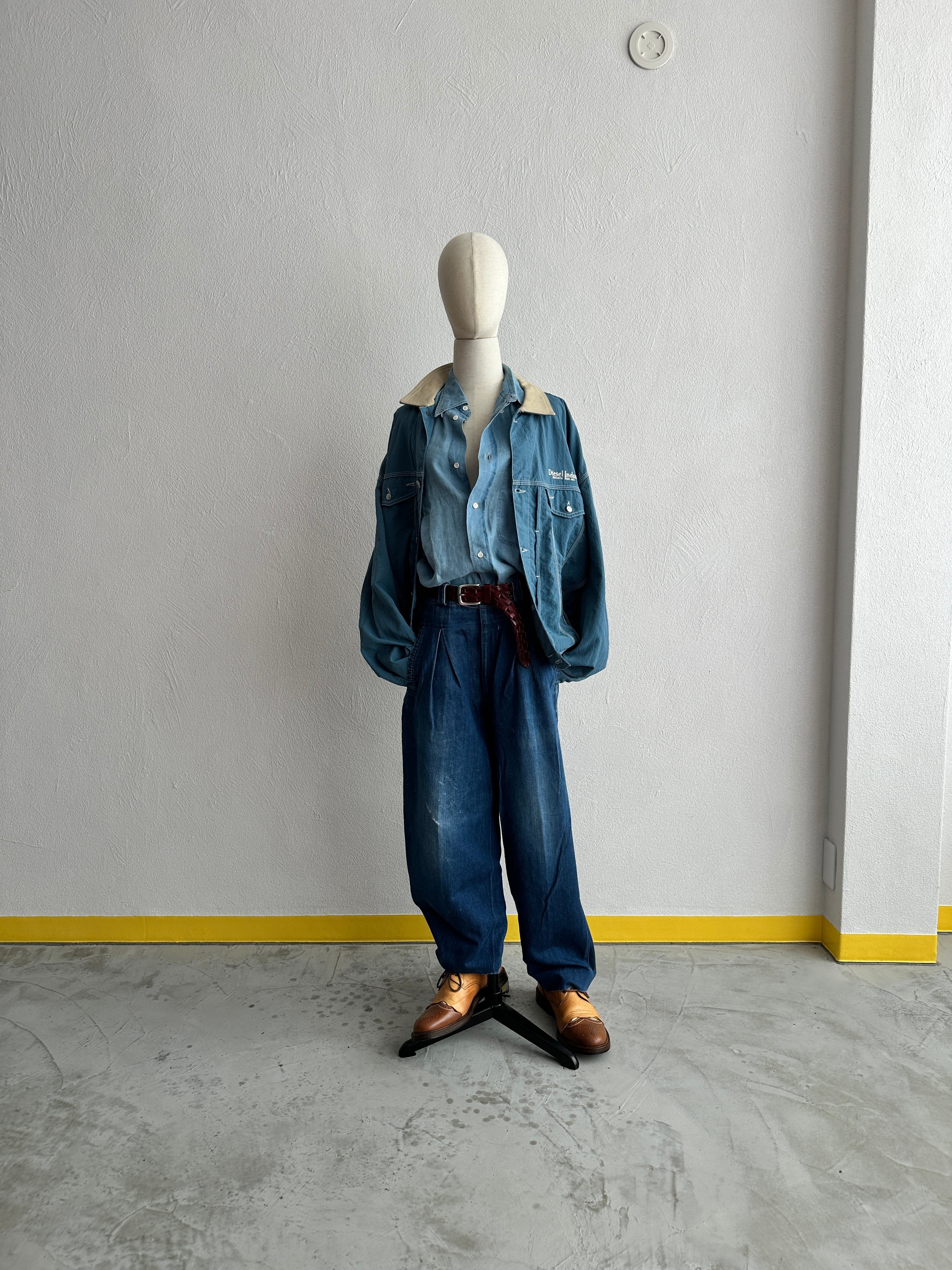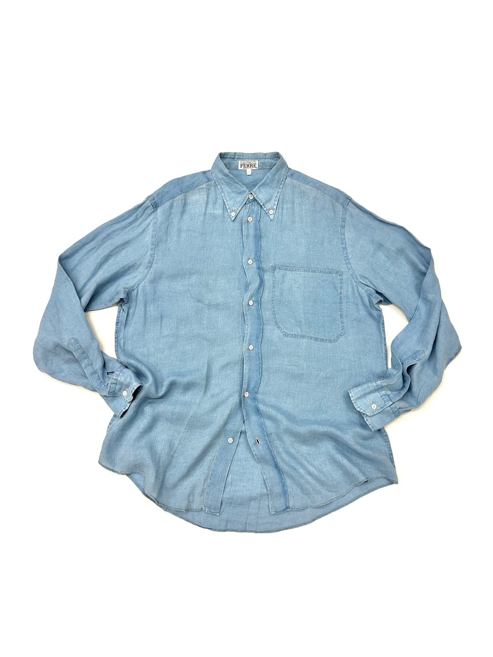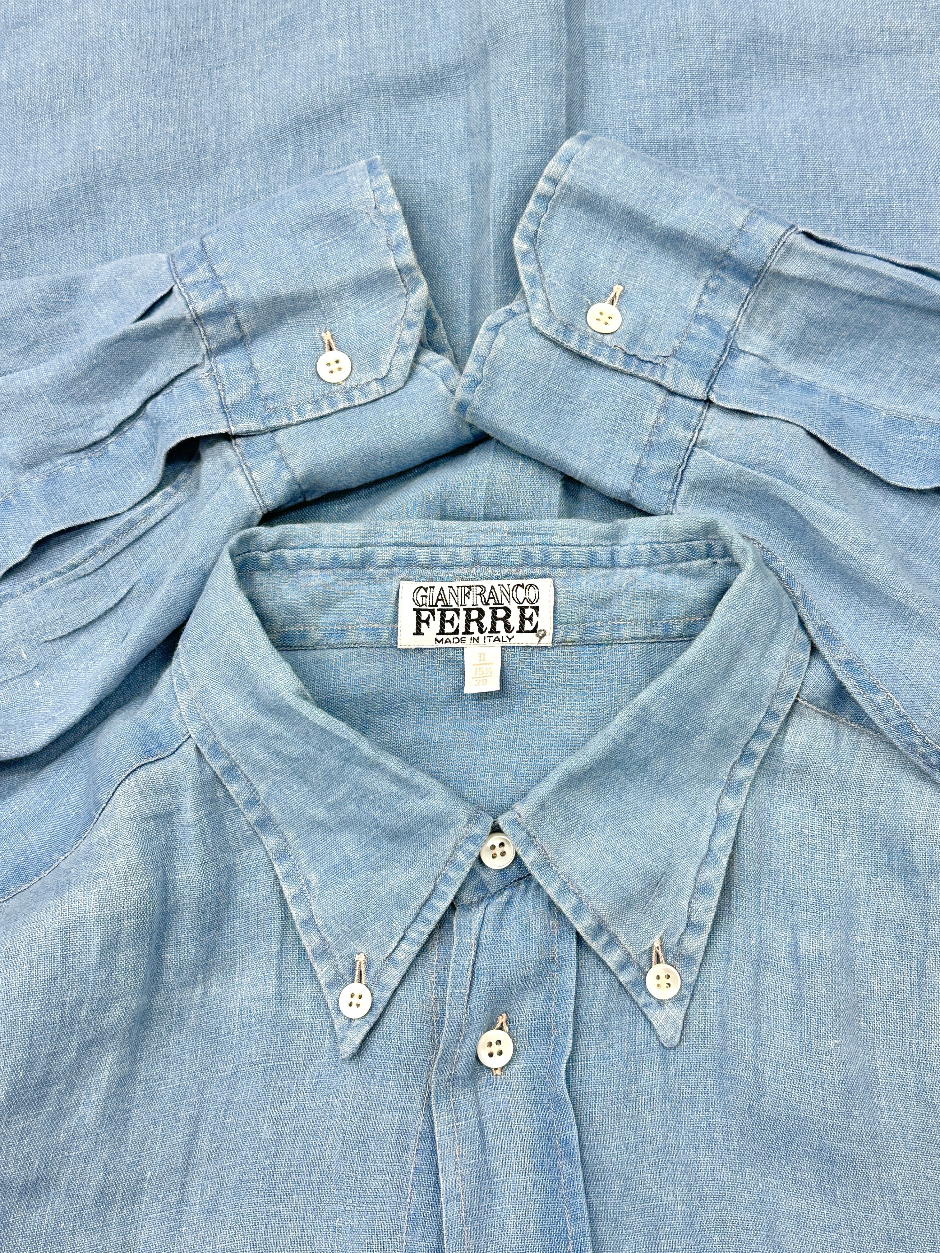 80-90's GIANFRANCO FERRE Airy Sky-Blue Cotton Poplins B/D SH