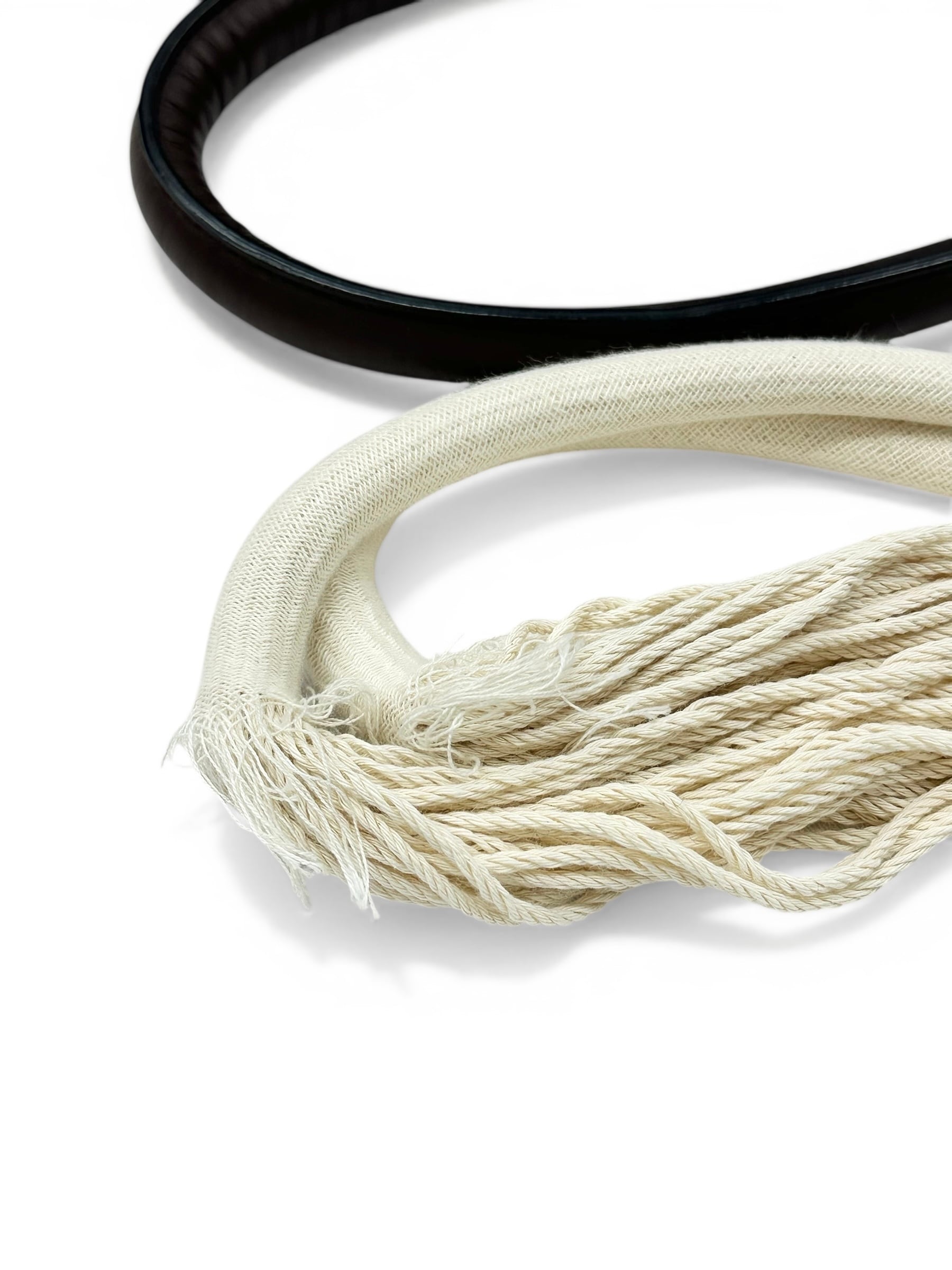 実際、円柱状のハンドルを採用しているレザーバッグを解体してみると、その中に通っている「紐芯」ってのが出てきます。