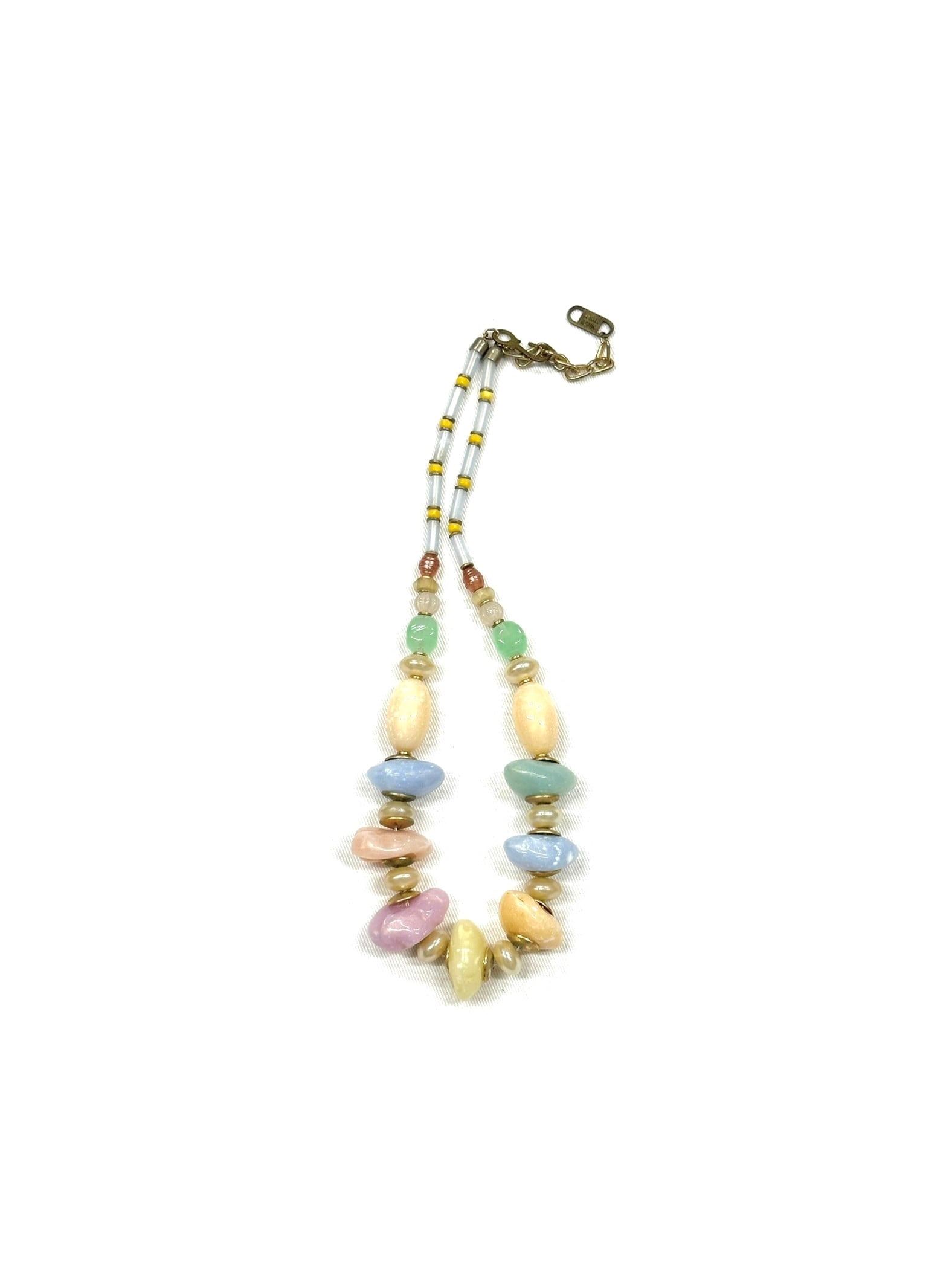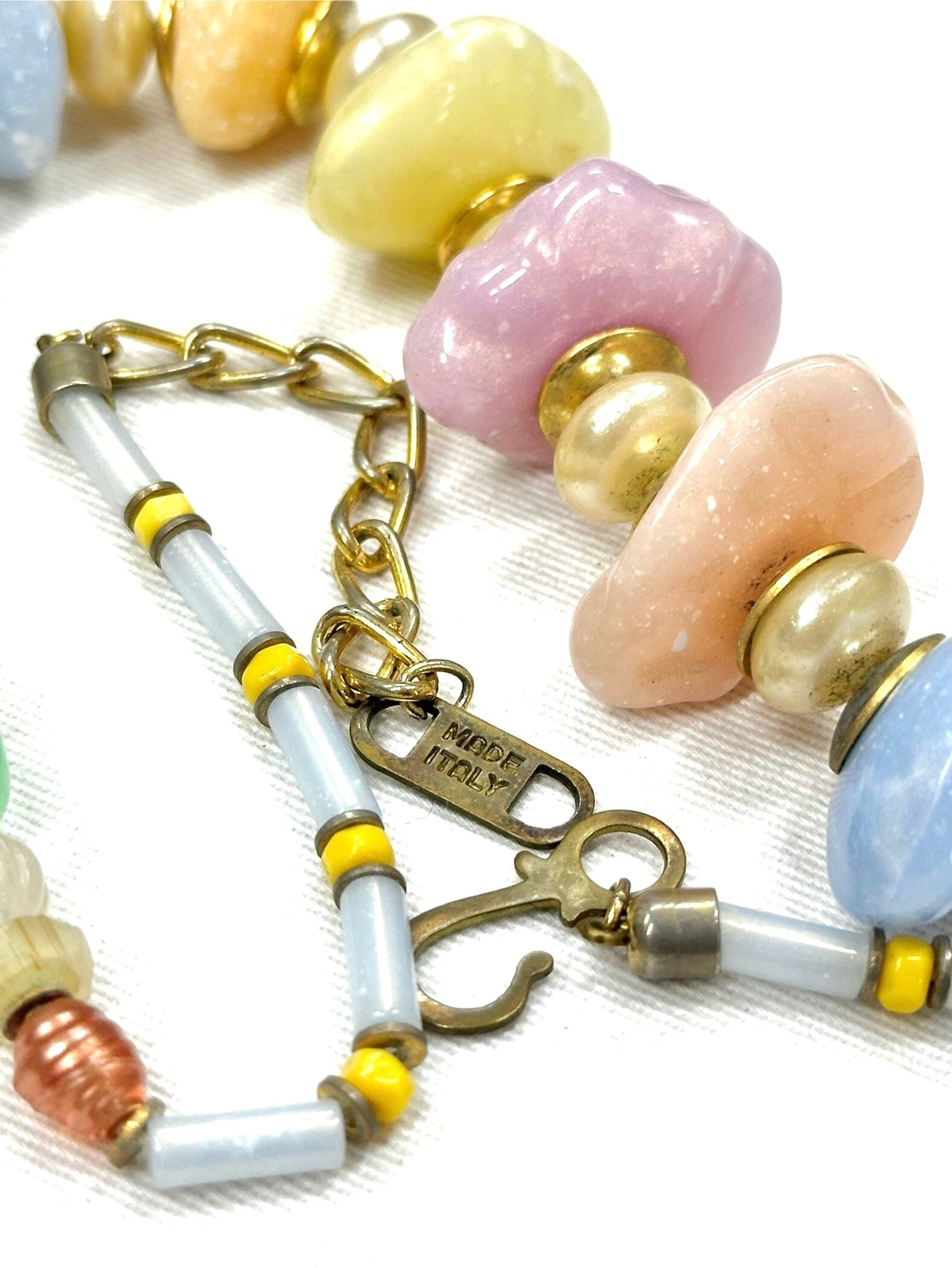 70-80's ITALY VINTAGE Pastel Color Stones Construct Necklace