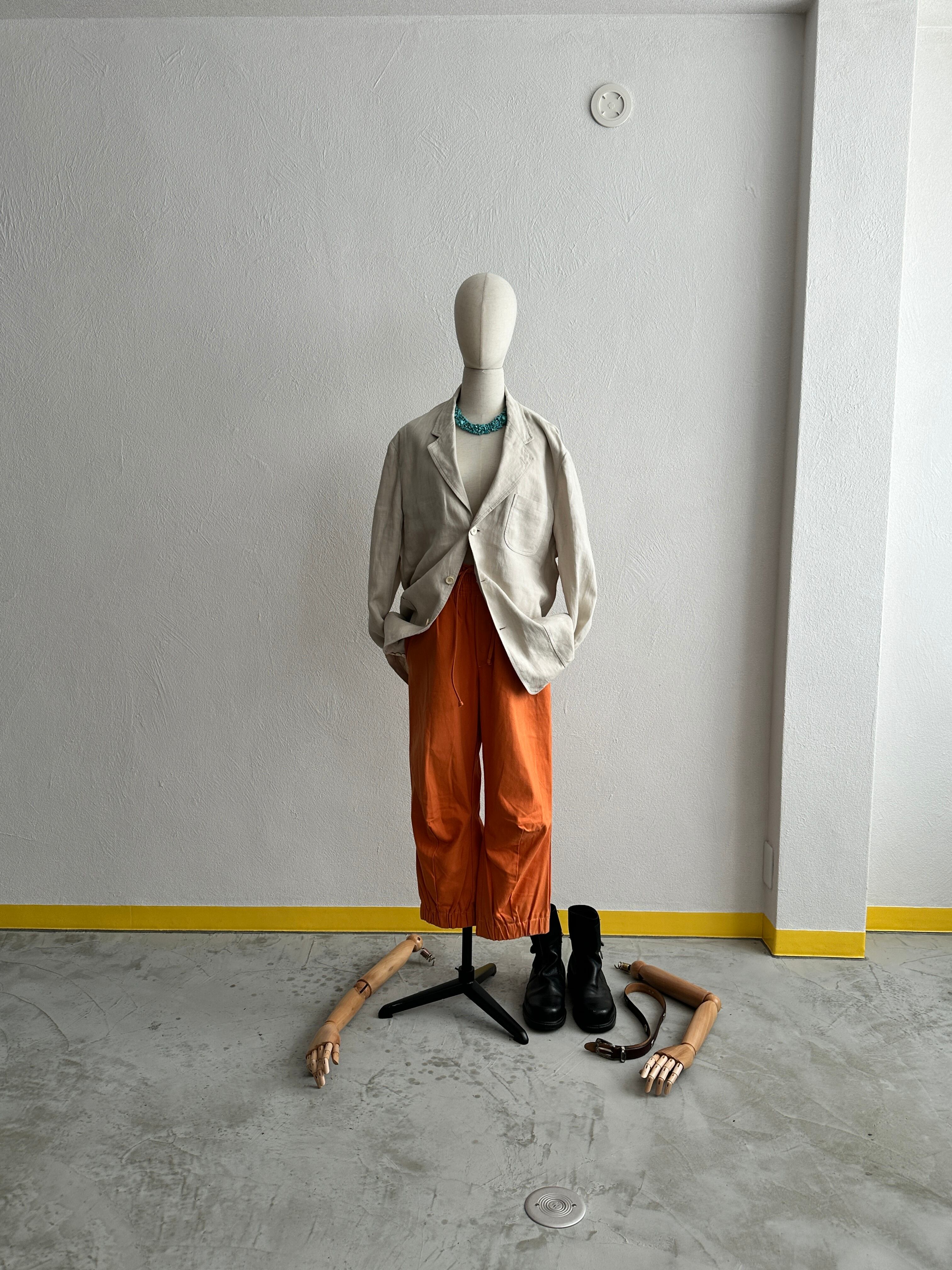 そして、ワイドなボディバランスの中で膝から下にダーツを畳んでまで作るテーパードシルエットからは、19世紀のジョドパーズの美意識も伝わります。