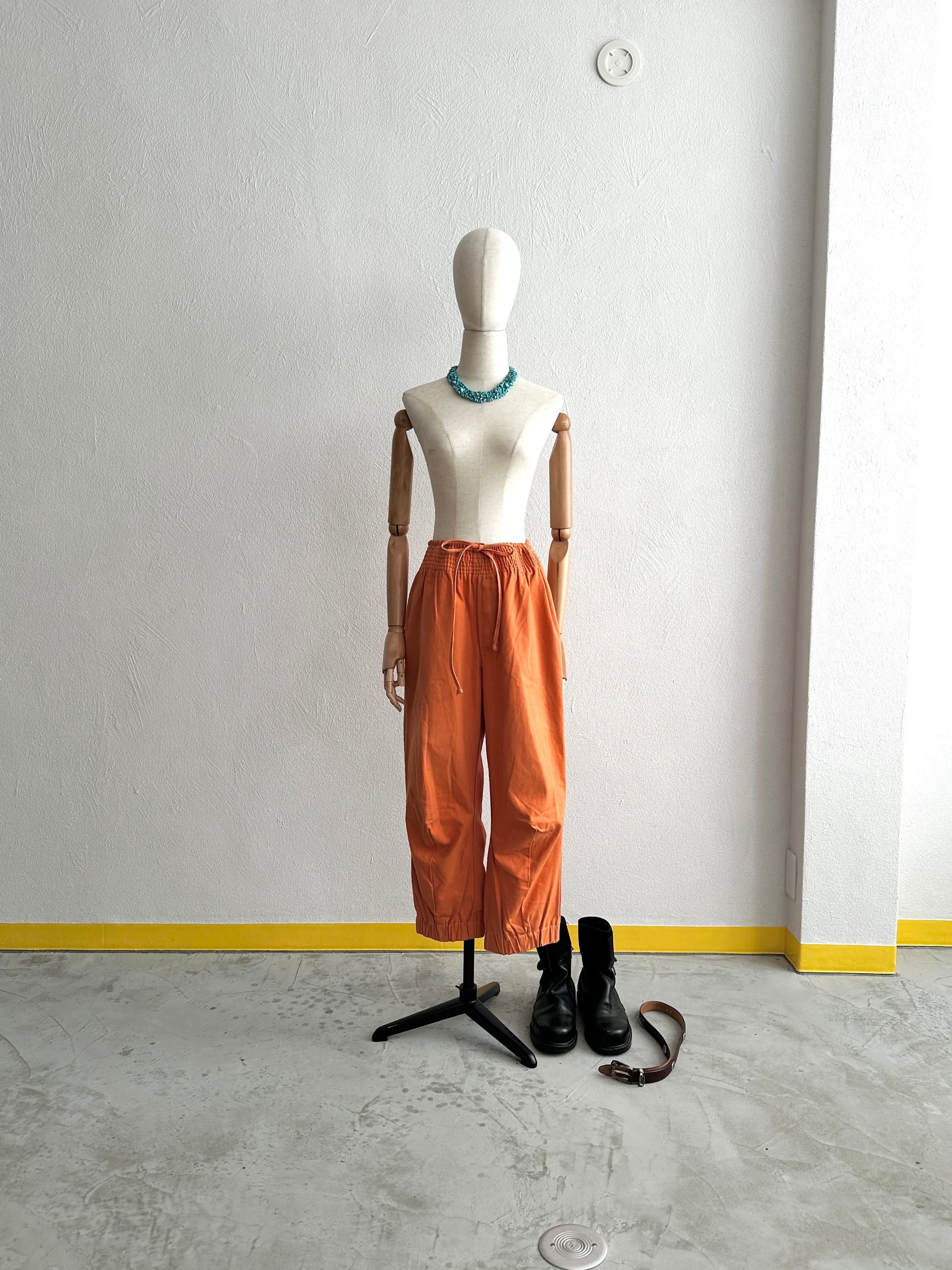 ウエストに何段も重ねられた装飾感覚のシャーリングは何処かサーカスっぽい大仰さがある。