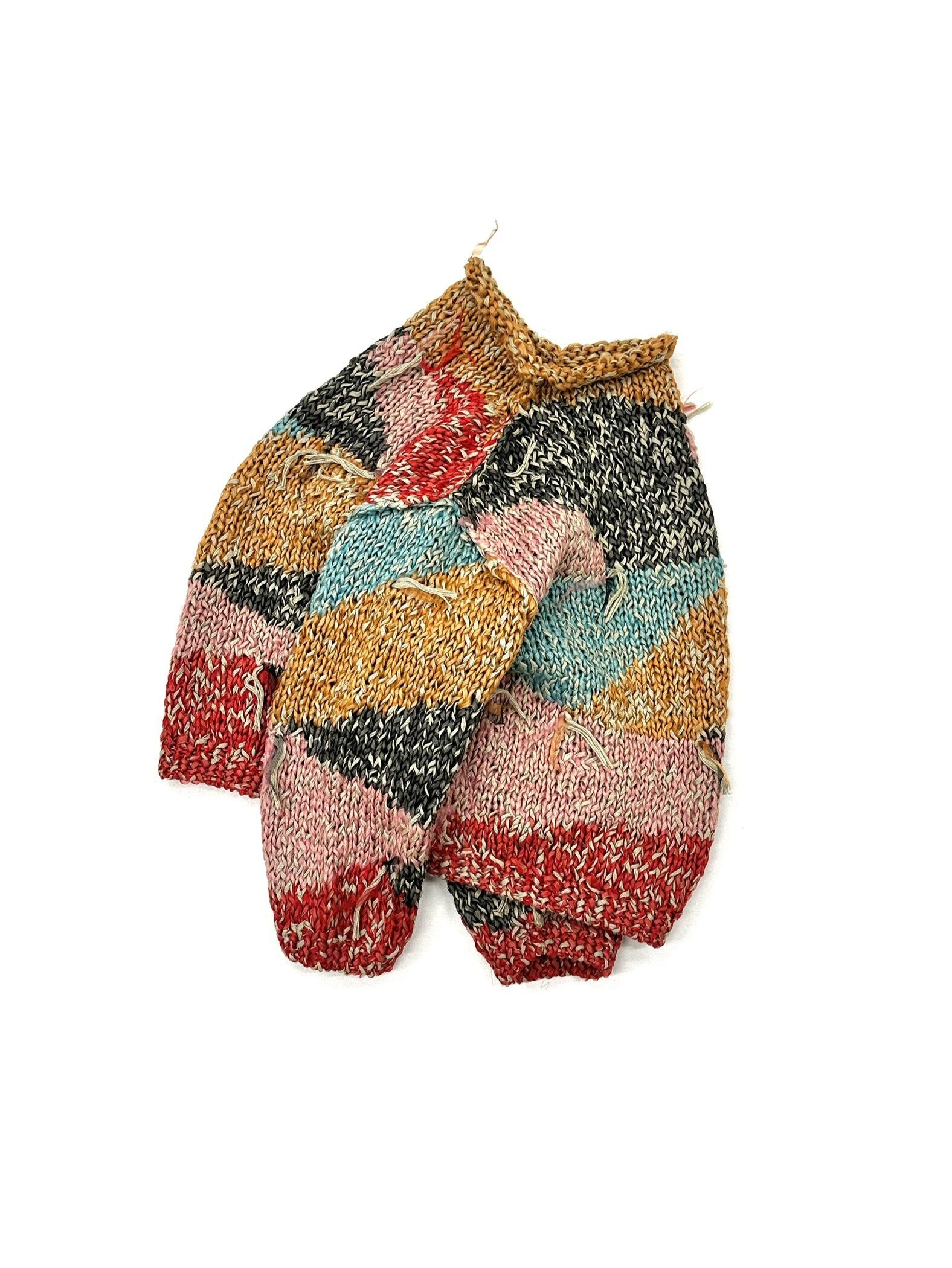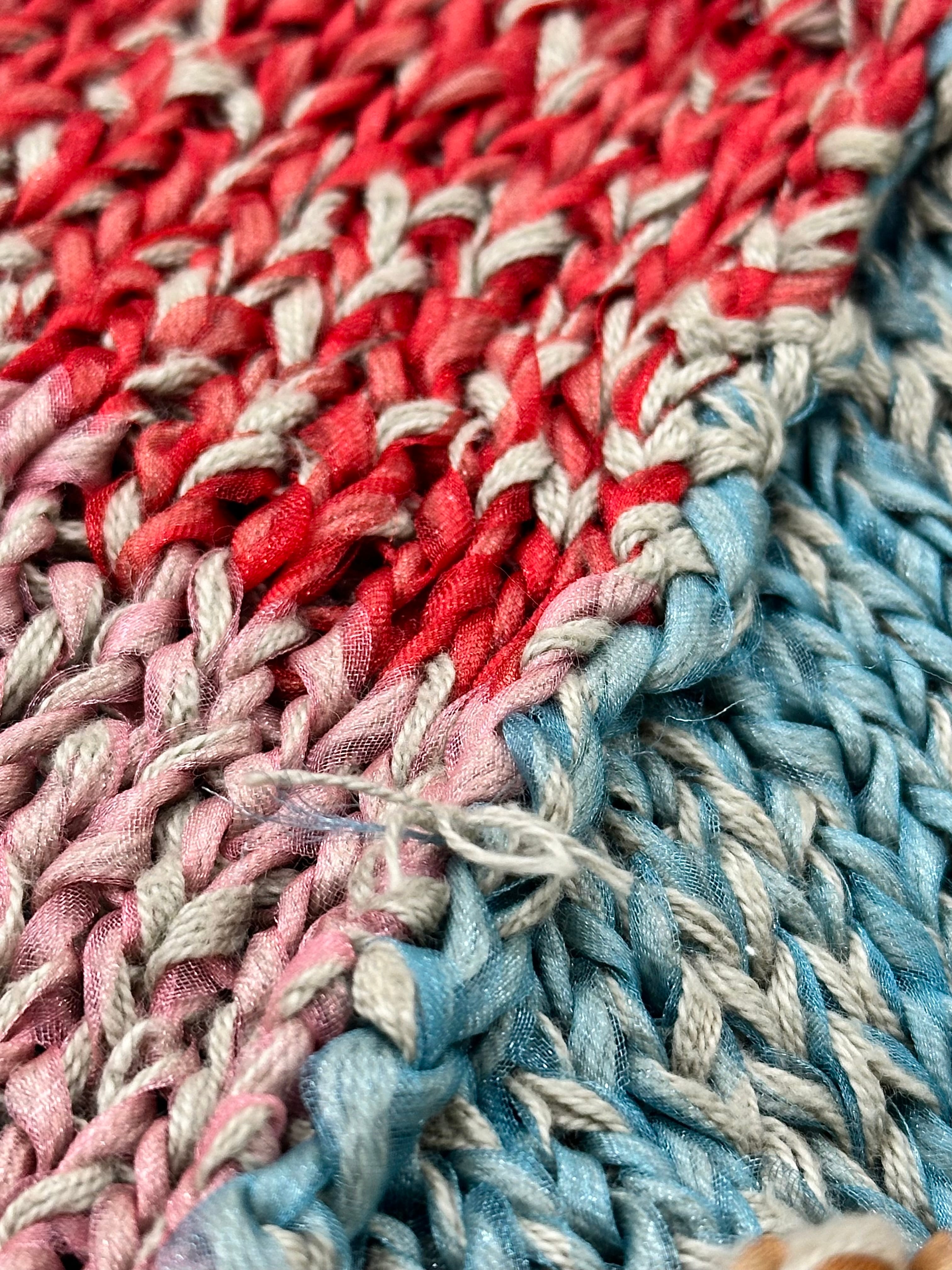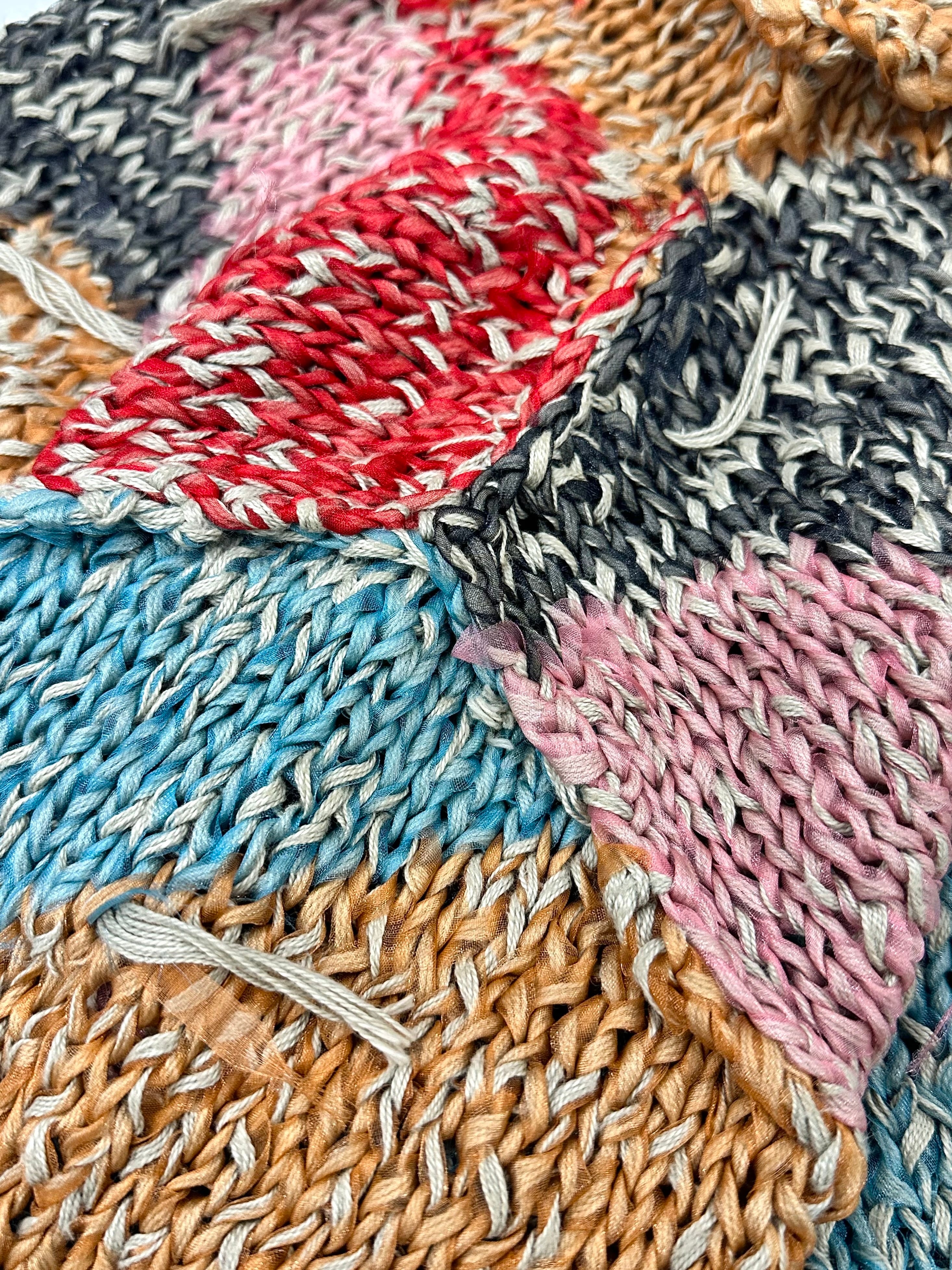 これはナイロン製のシアーリボンをコットンニットと一緒に編み上げたクレイジープロダクト。