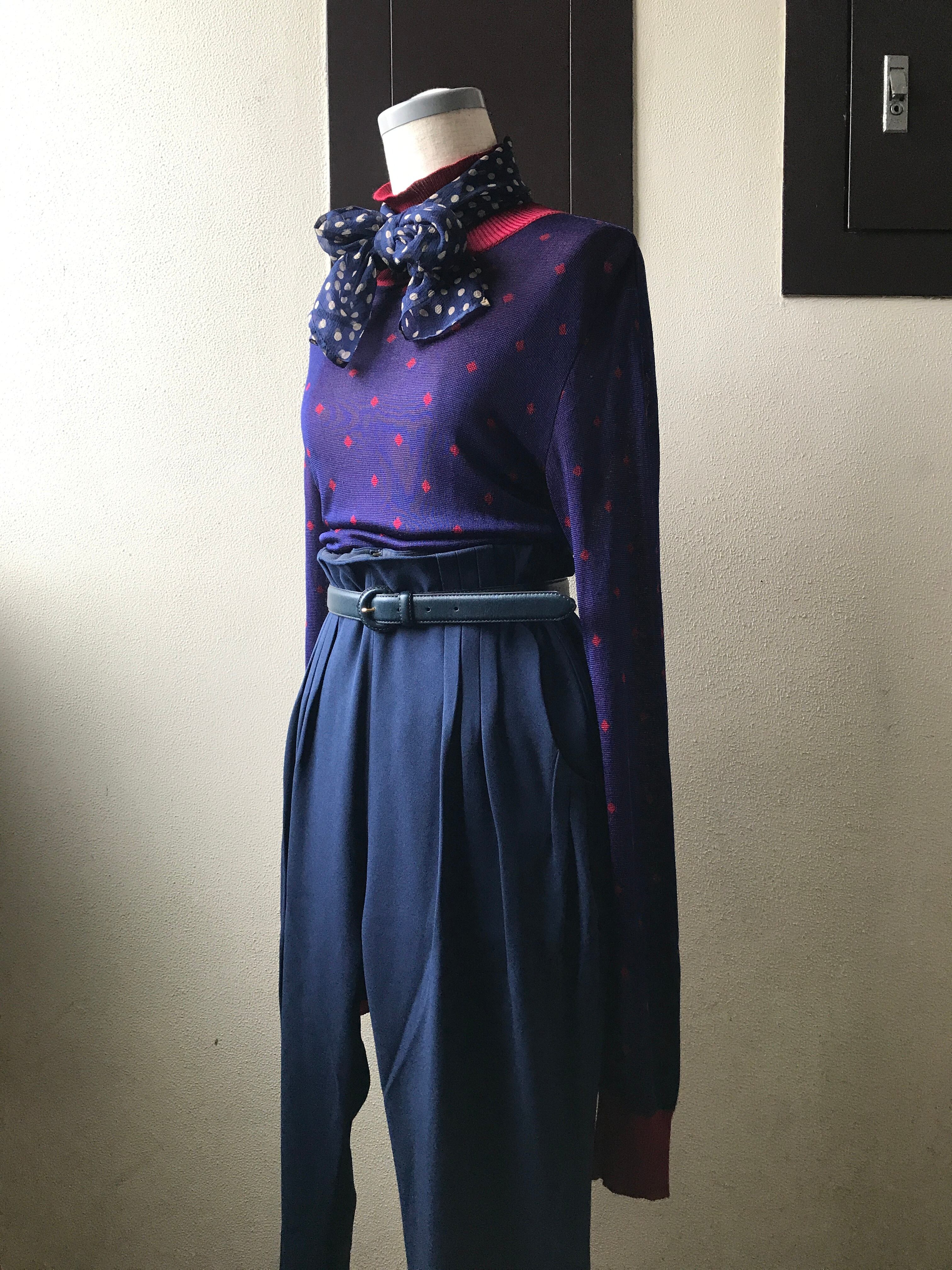 パープルに臙脂色のポルカドット。