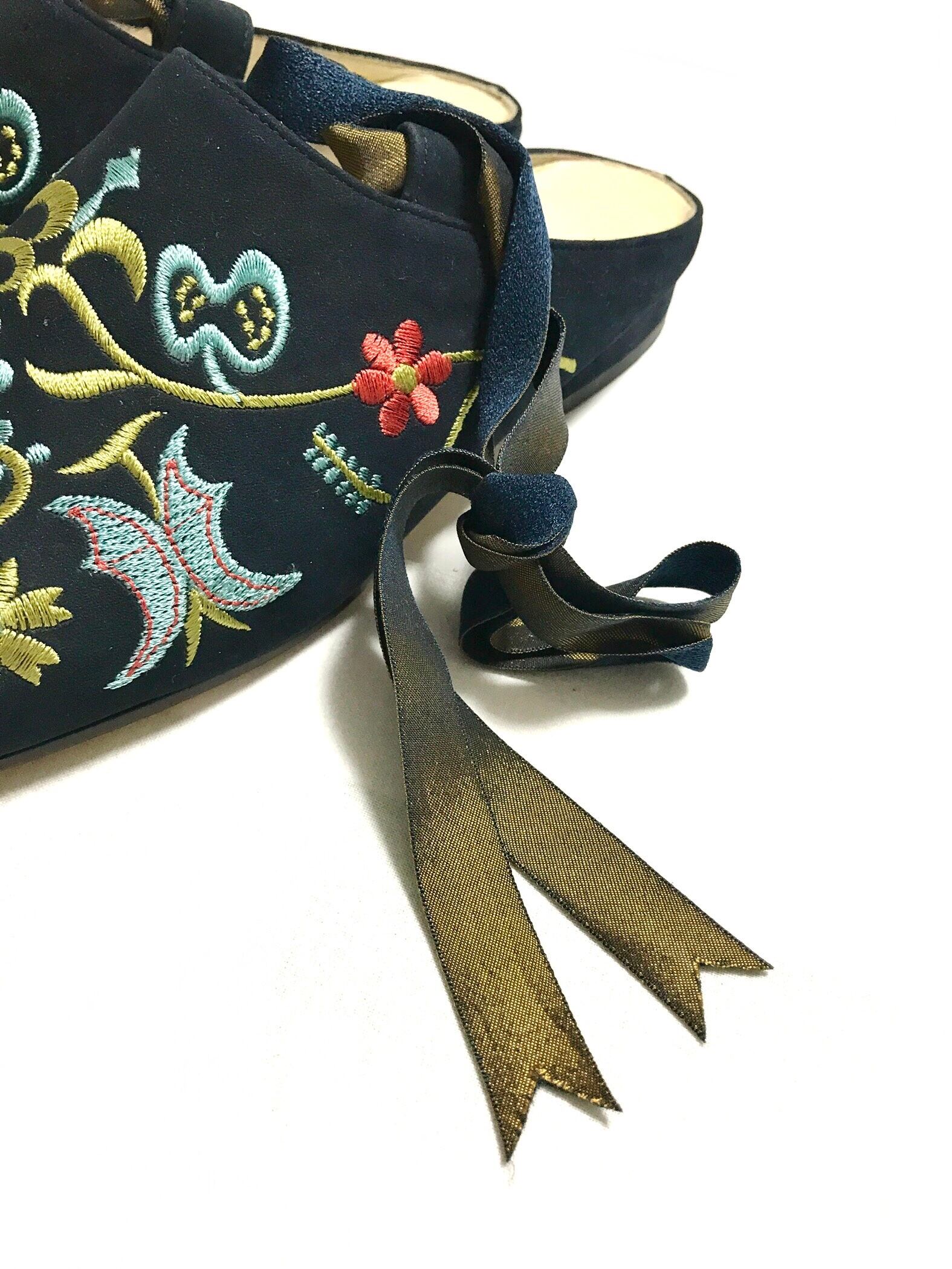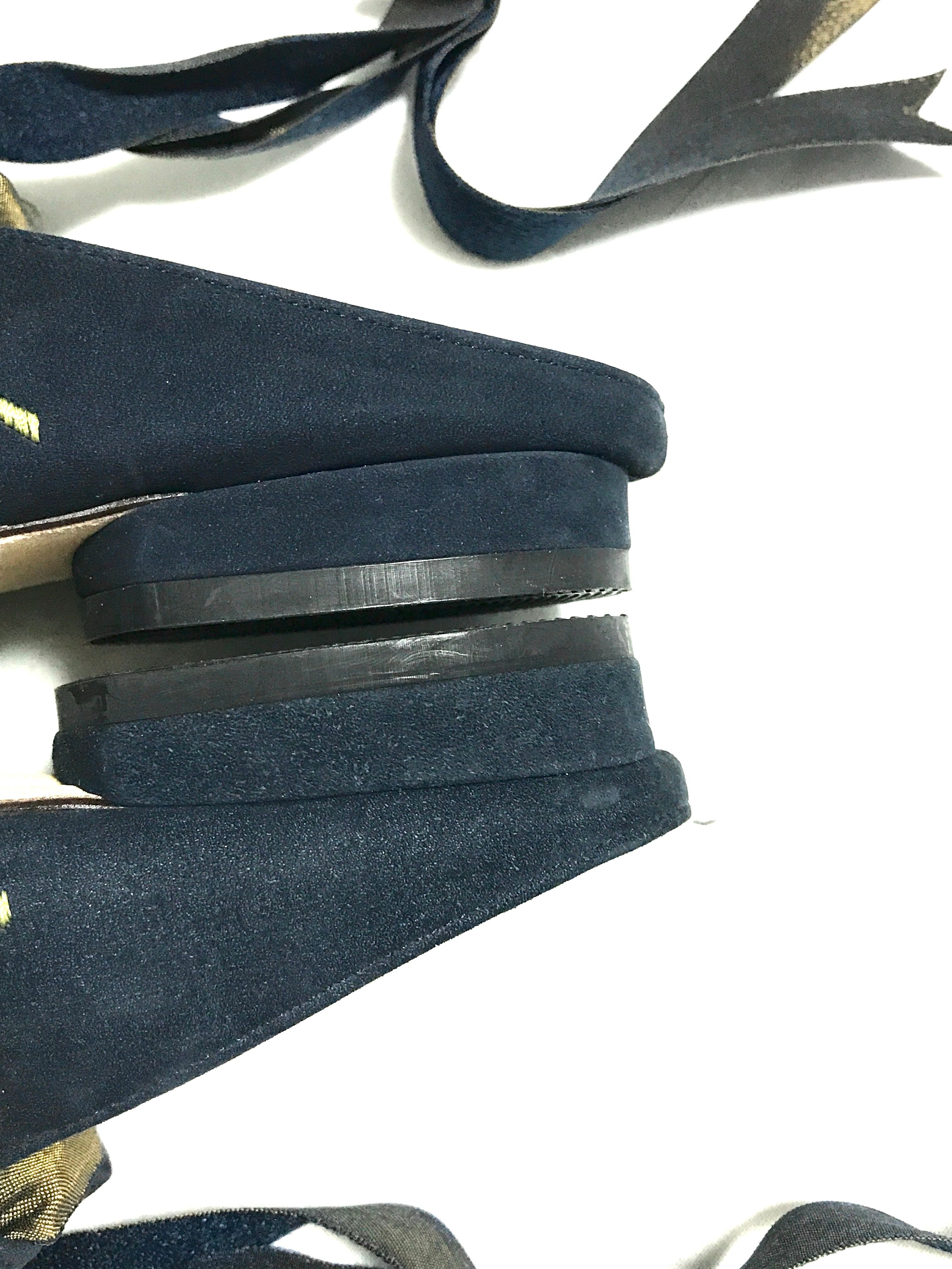 玉虫色とネイビーのリバーシリボンで結んでフィッティング。というデザイン。