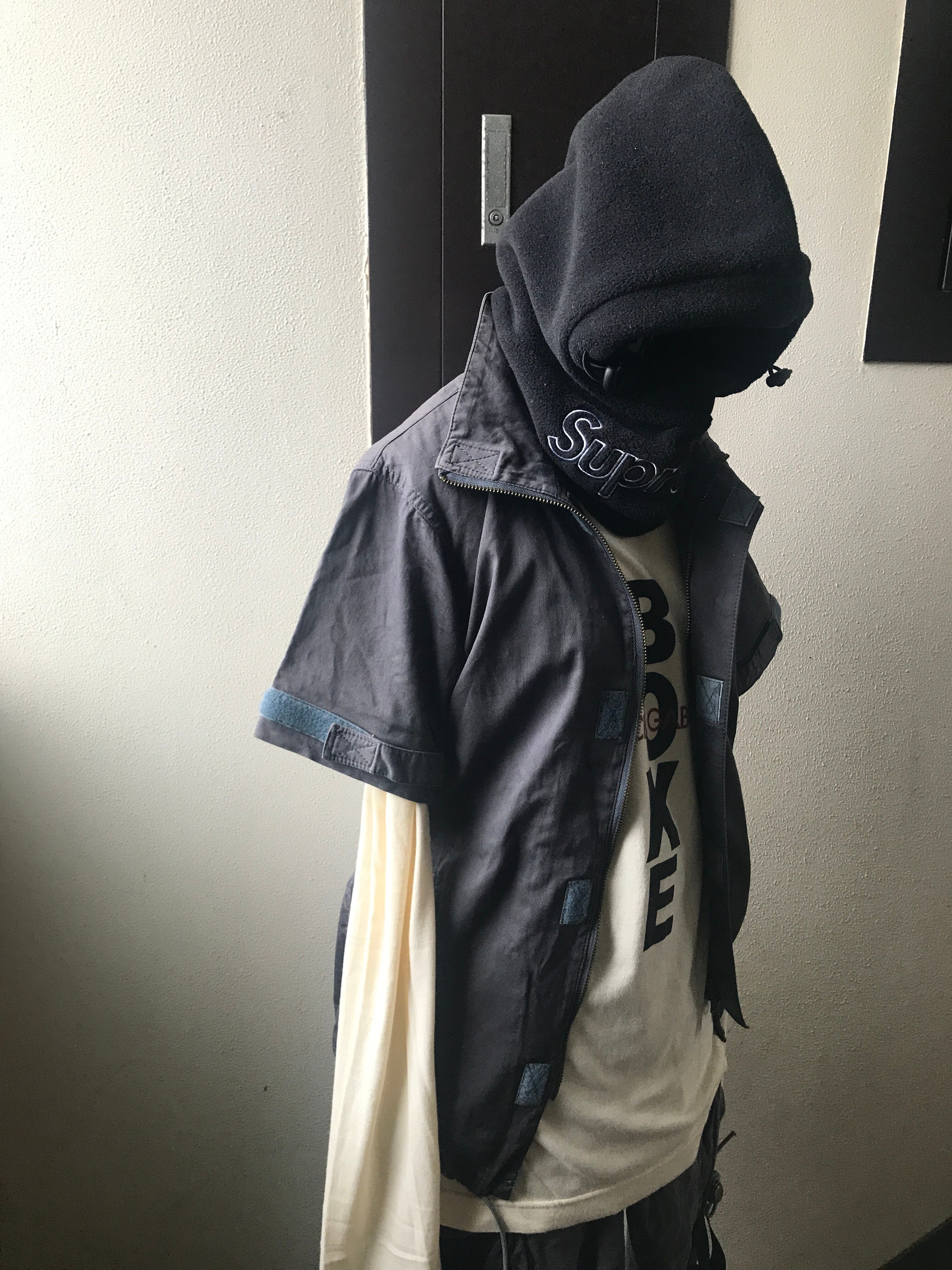 随所に配されたベルクロテープと青みがかったダスティグレイで、90'sテクニカルにおける格好良さの王道を走りつつ、虚を突くようなハズし。