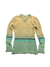 オリジナルのフェアアイル柄をデザインしたニットトップ。