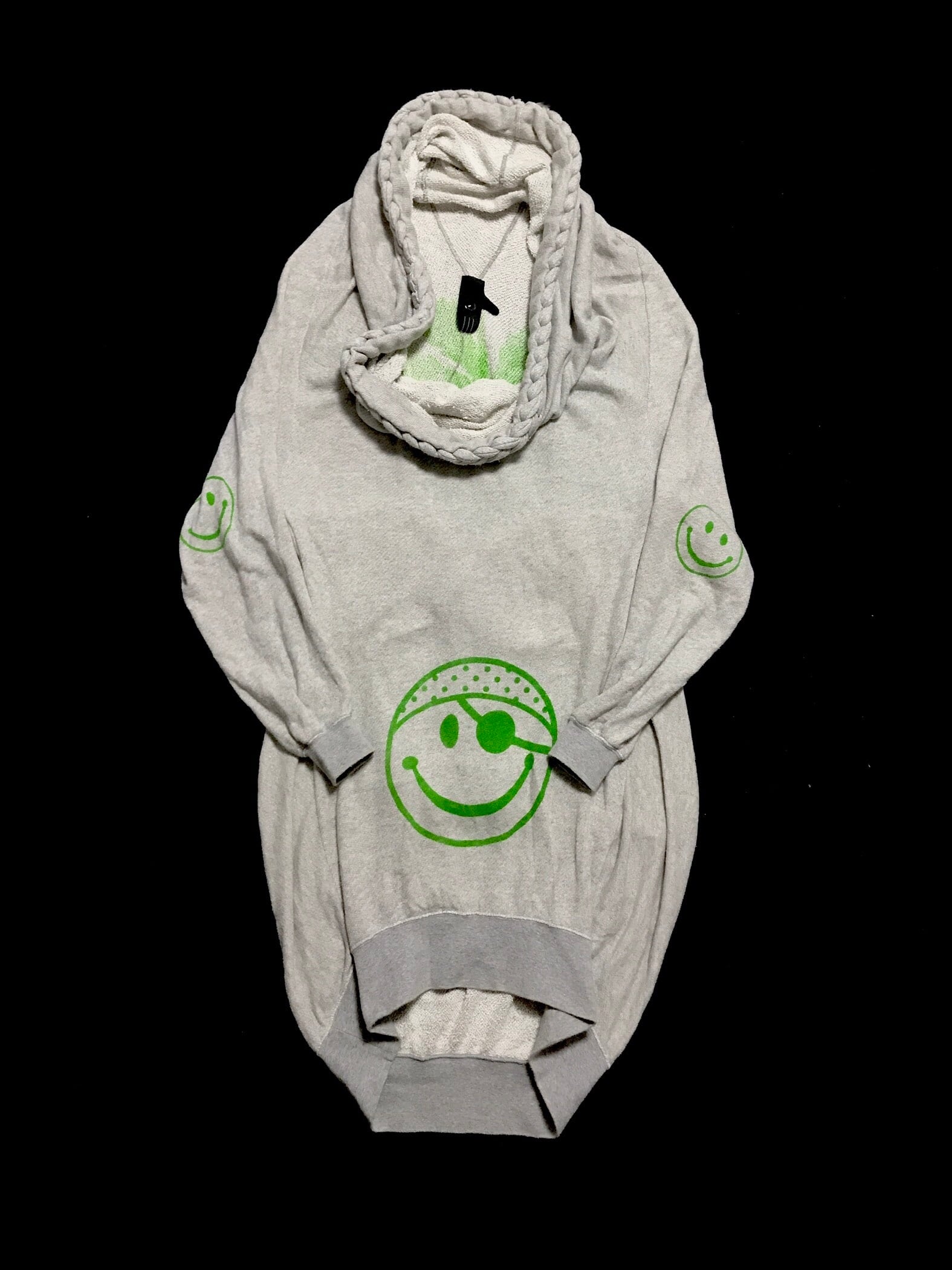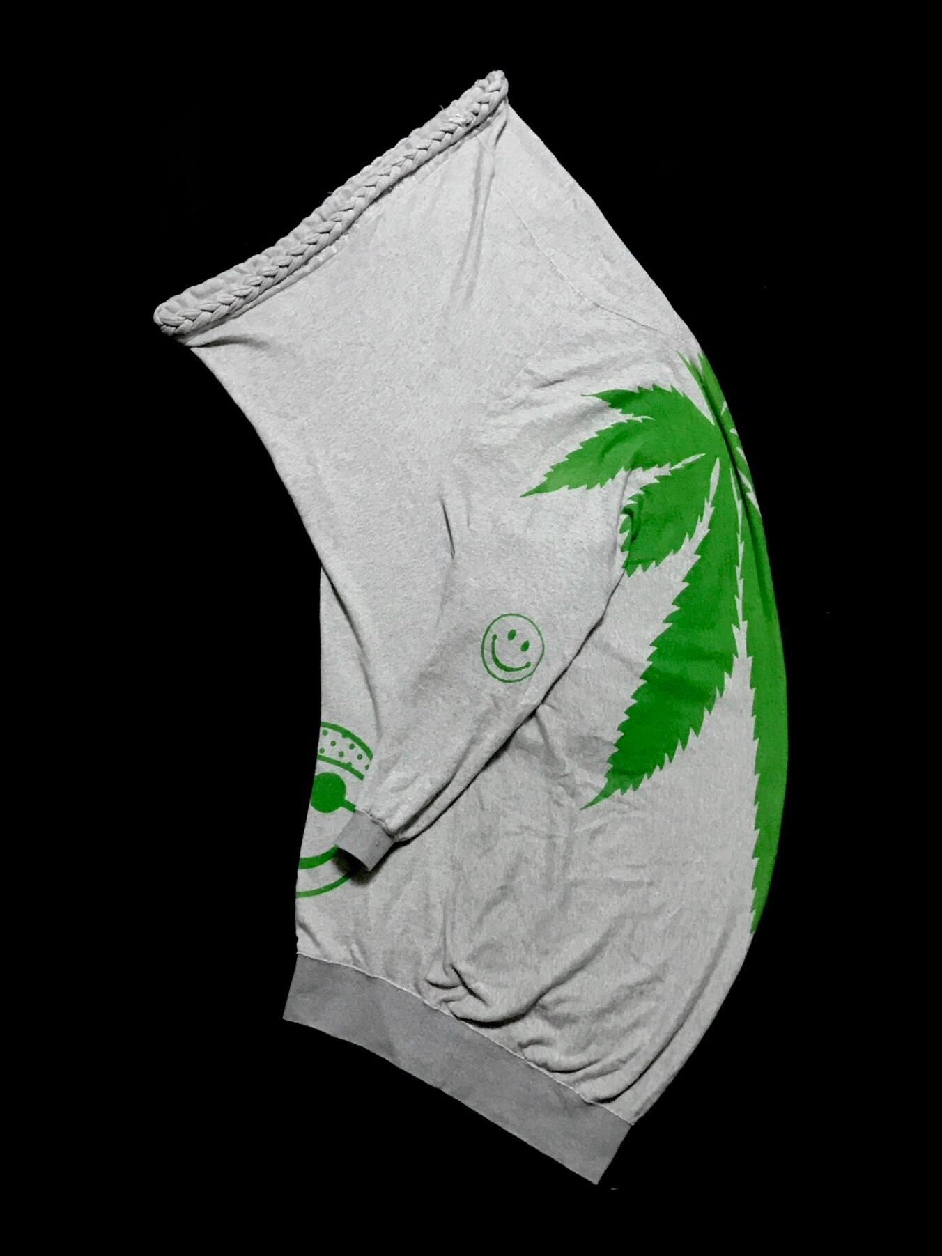 さてそんなビジュアルにスマイルマークが入り、スマイルマークと同じテンションで特大のカンナビスプリントが背中に入ります。