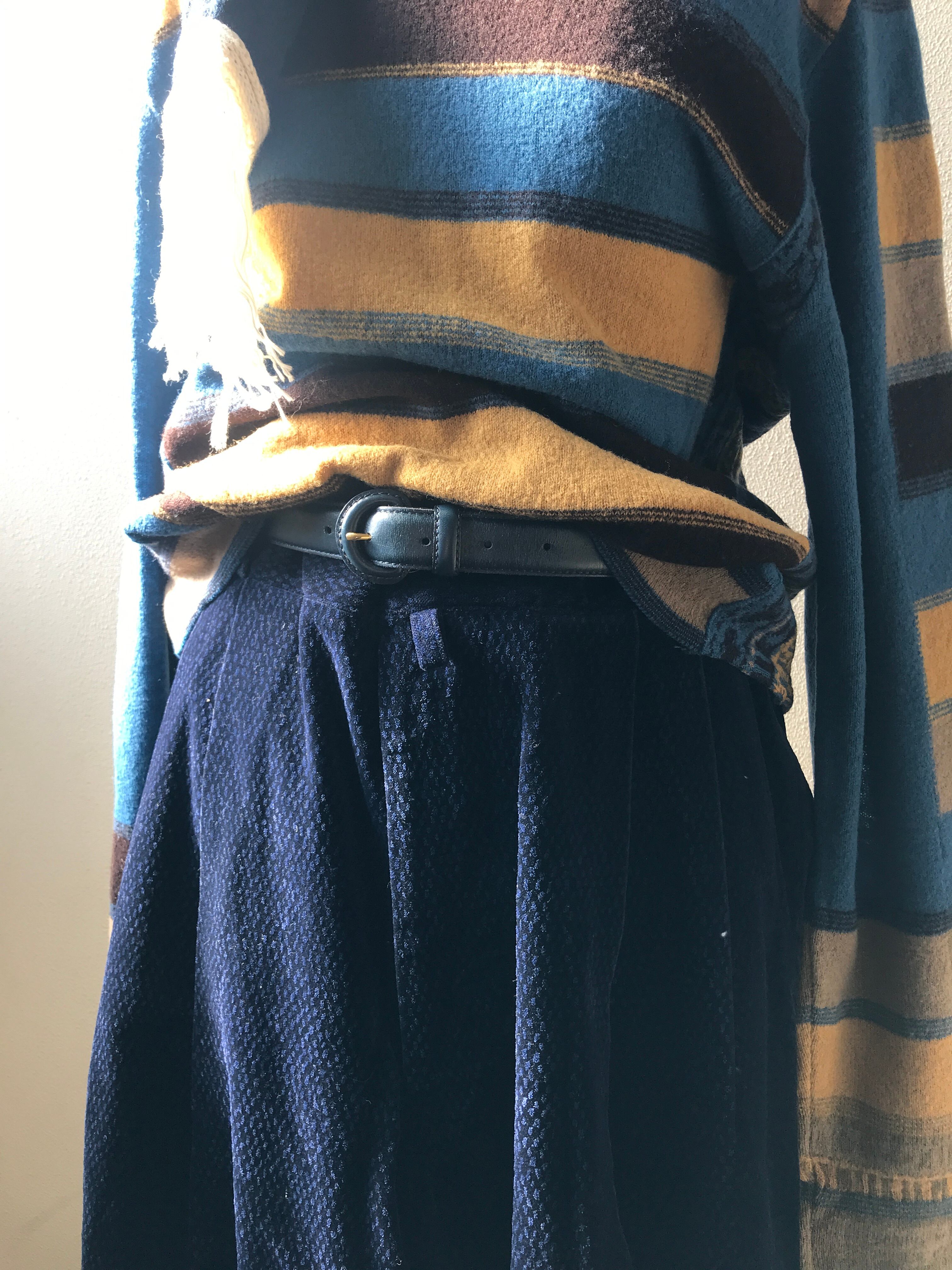 80-90's ITALY VINTAGE “ARNO CORSINI” Navy Velvet Ex-Wide Slacks