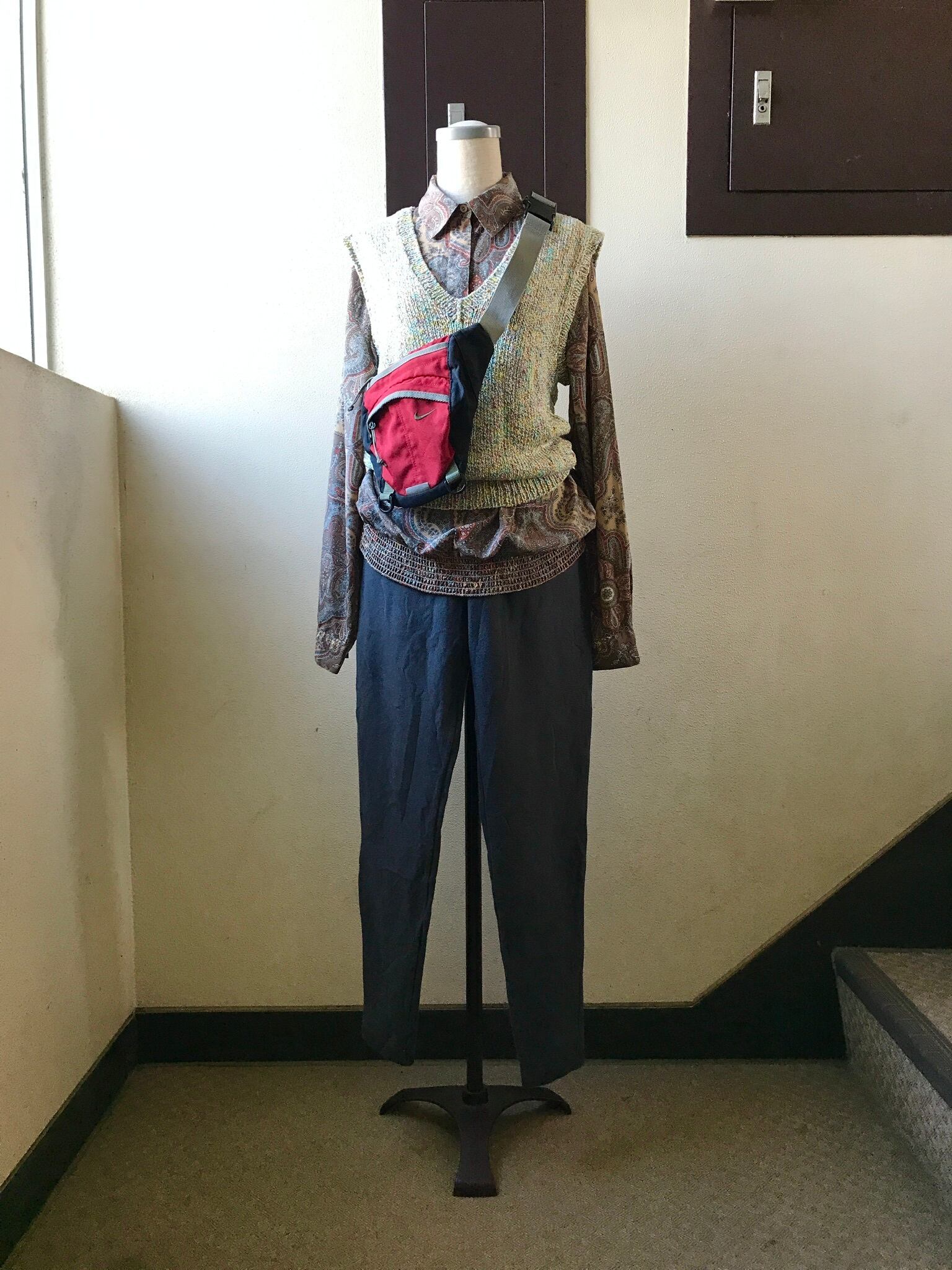 サイズ感からくる可愛さ、このバランスによって締め括ることで全体が引き締まるようなスタイル、例えば今回のようなファンシーアイテムで作るもったりとしたスタイルだったり、例えばヴィンテージの柄物(に限らず)ワンピースだったり