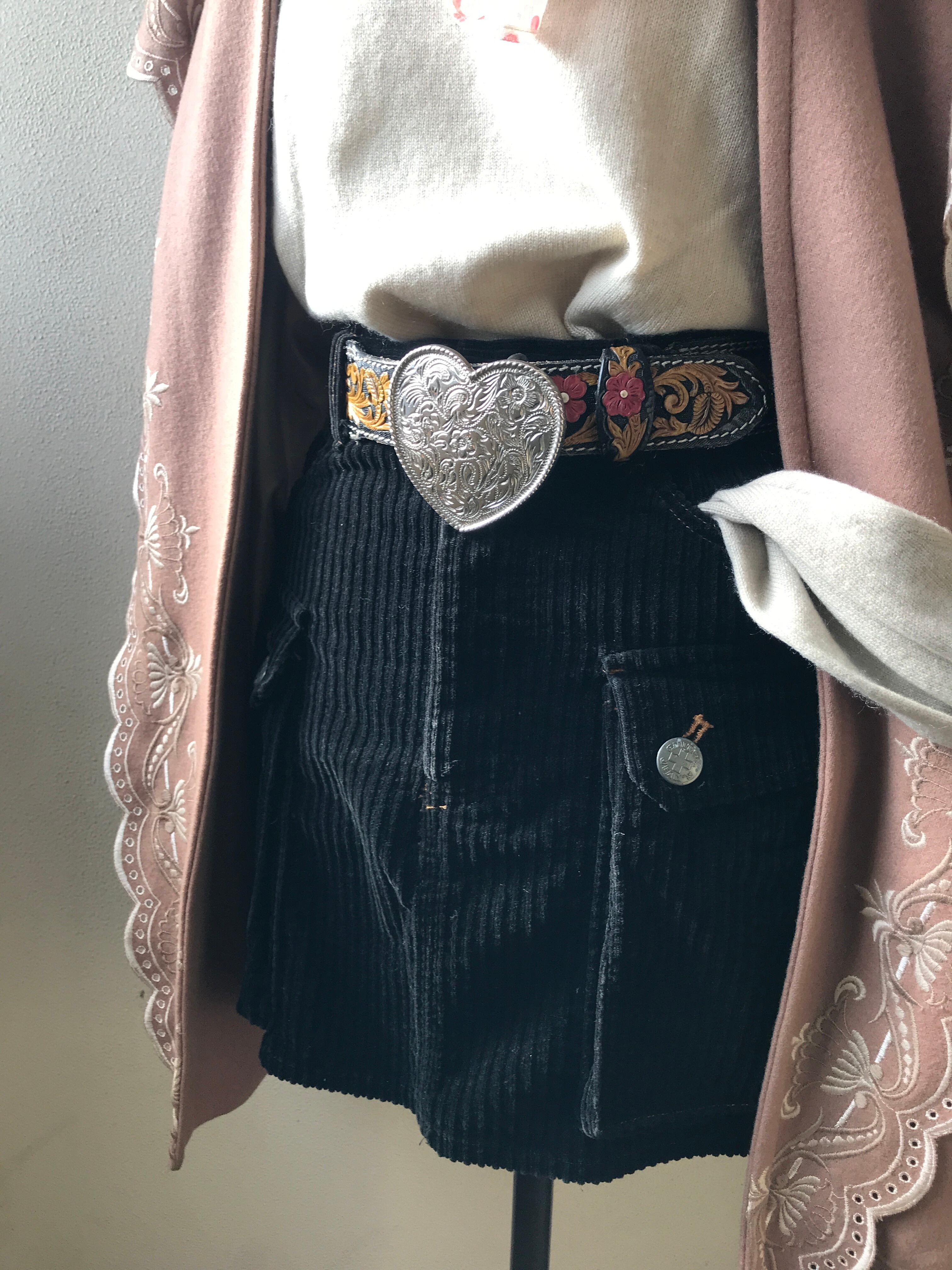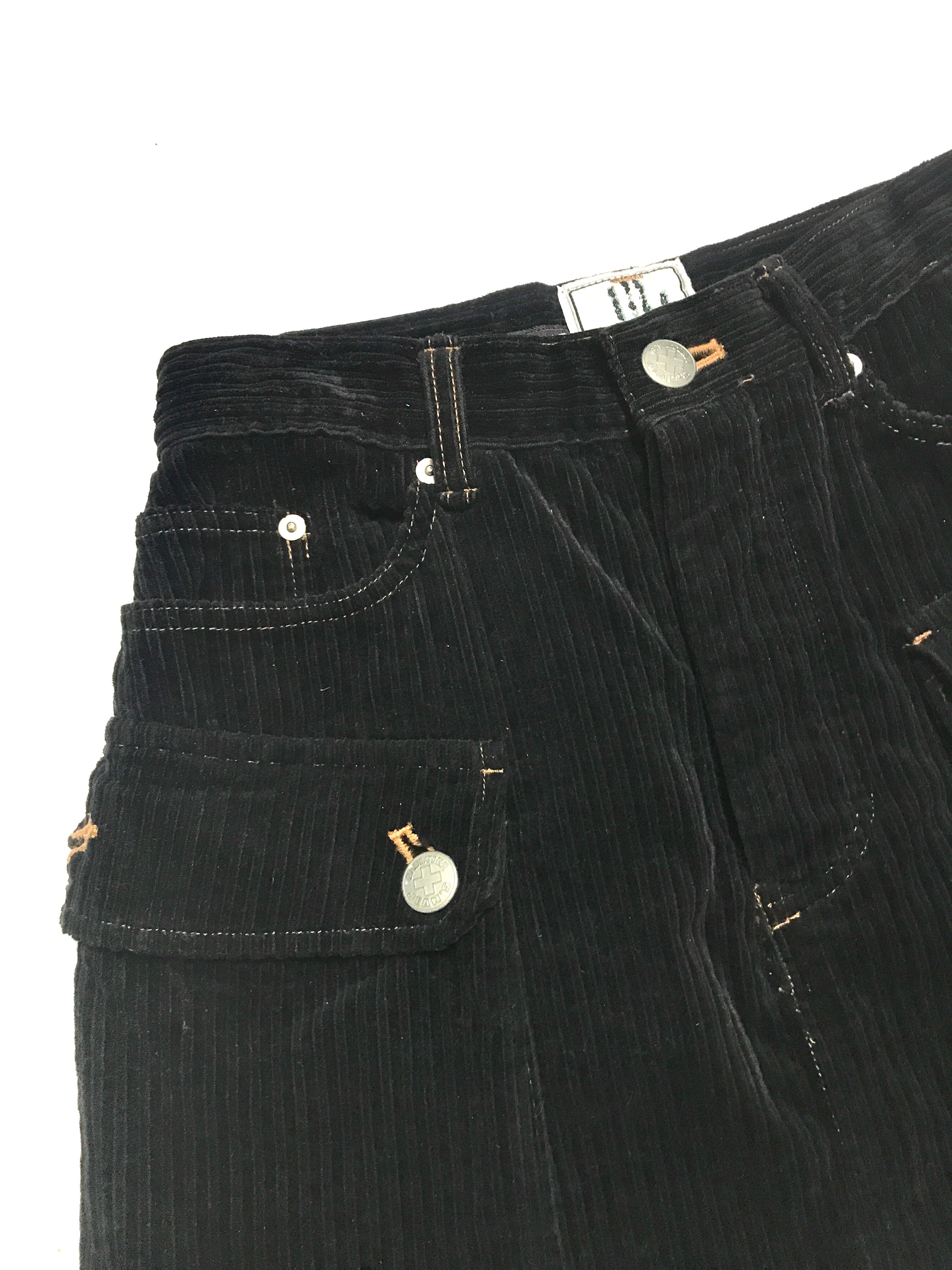 左右に大きなカーゴポケットを付けた太畝コーデュロイのミニスカート。