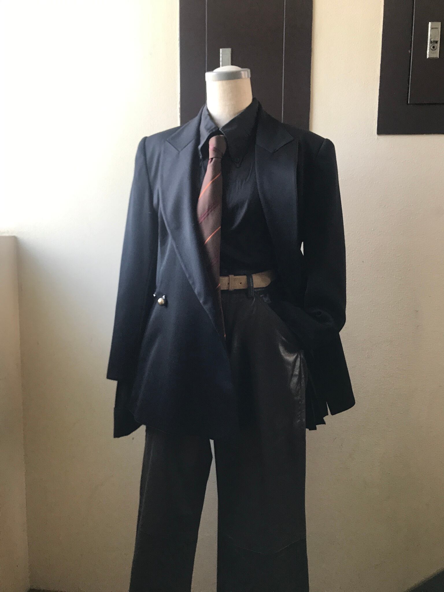 不気味な程愛想の無いシリアスな空気ですが、そんな中でちょっとアイビーチックなボタンダウンカラー使ってるのが特徴的ですね。