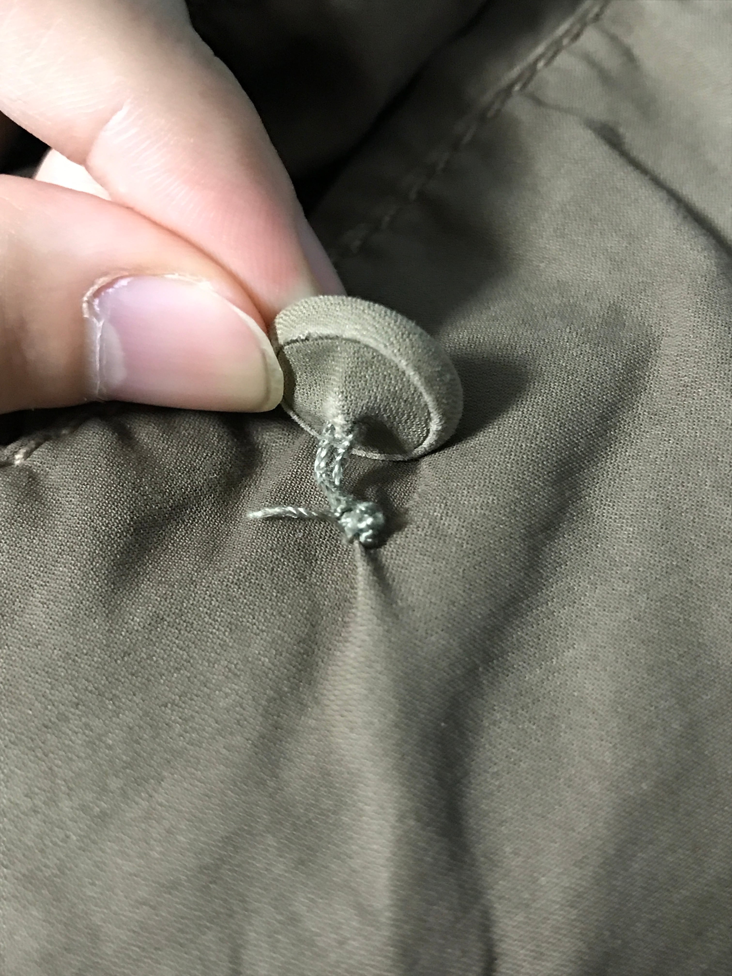 このボタン面白いのが、裏面…つまりボタンの足が付いている方も包んじゃってるんですよ。