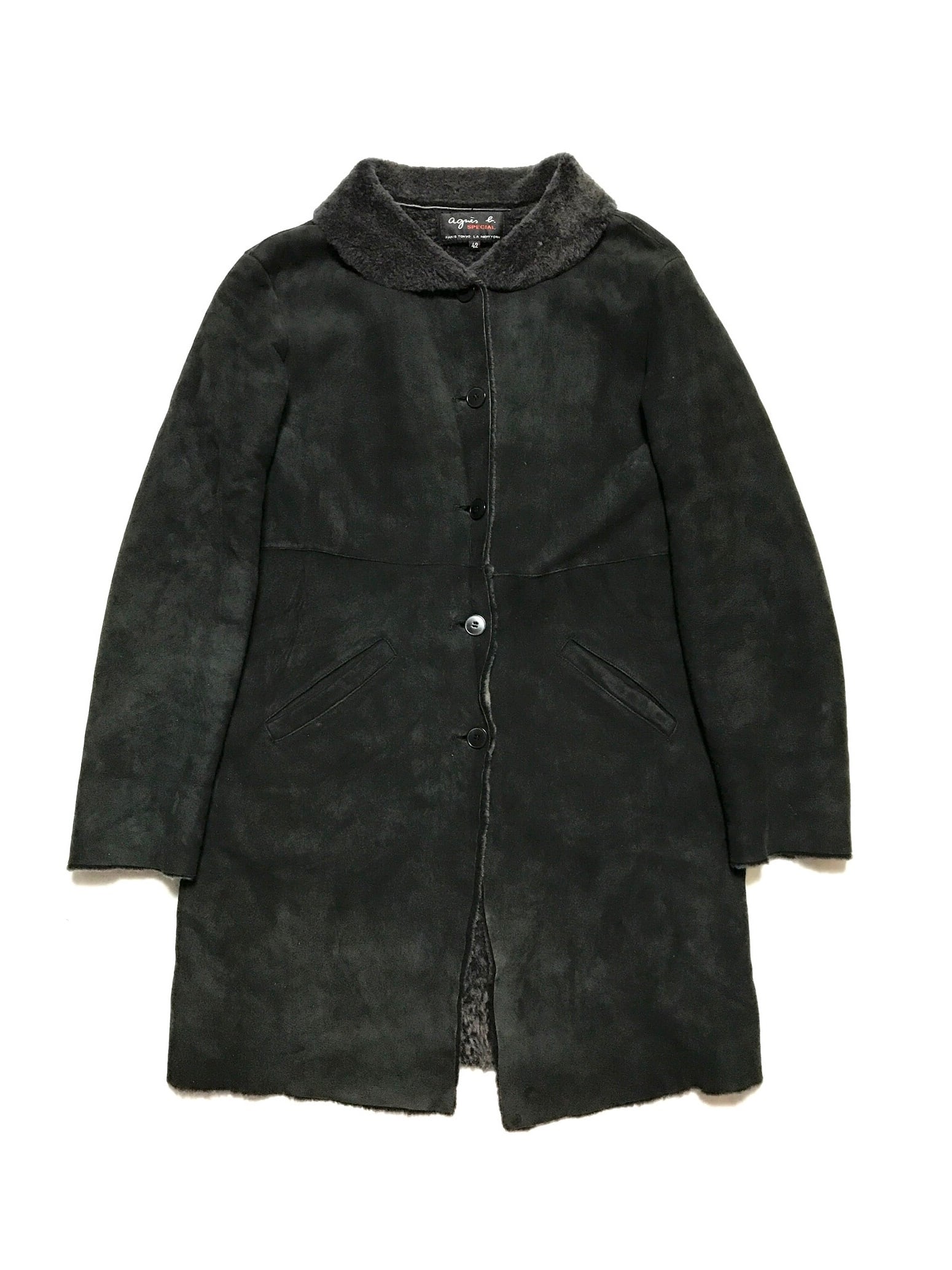 agnes.b SPECIAL Black Mouton Coat 42