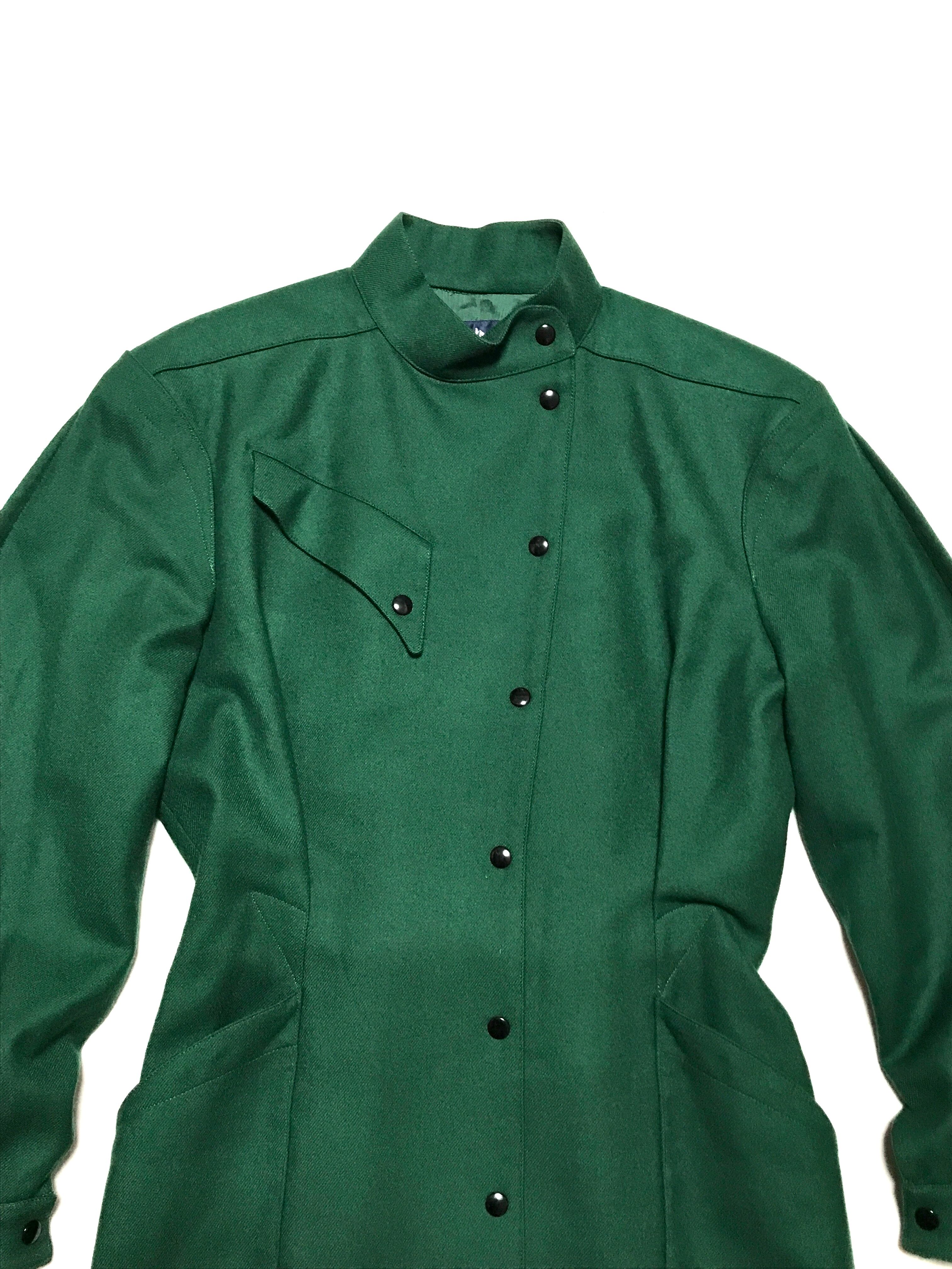 こちらは鮮やかなシャルトリューズ・グリーンのウールで仕立てられたドレーピングコート。