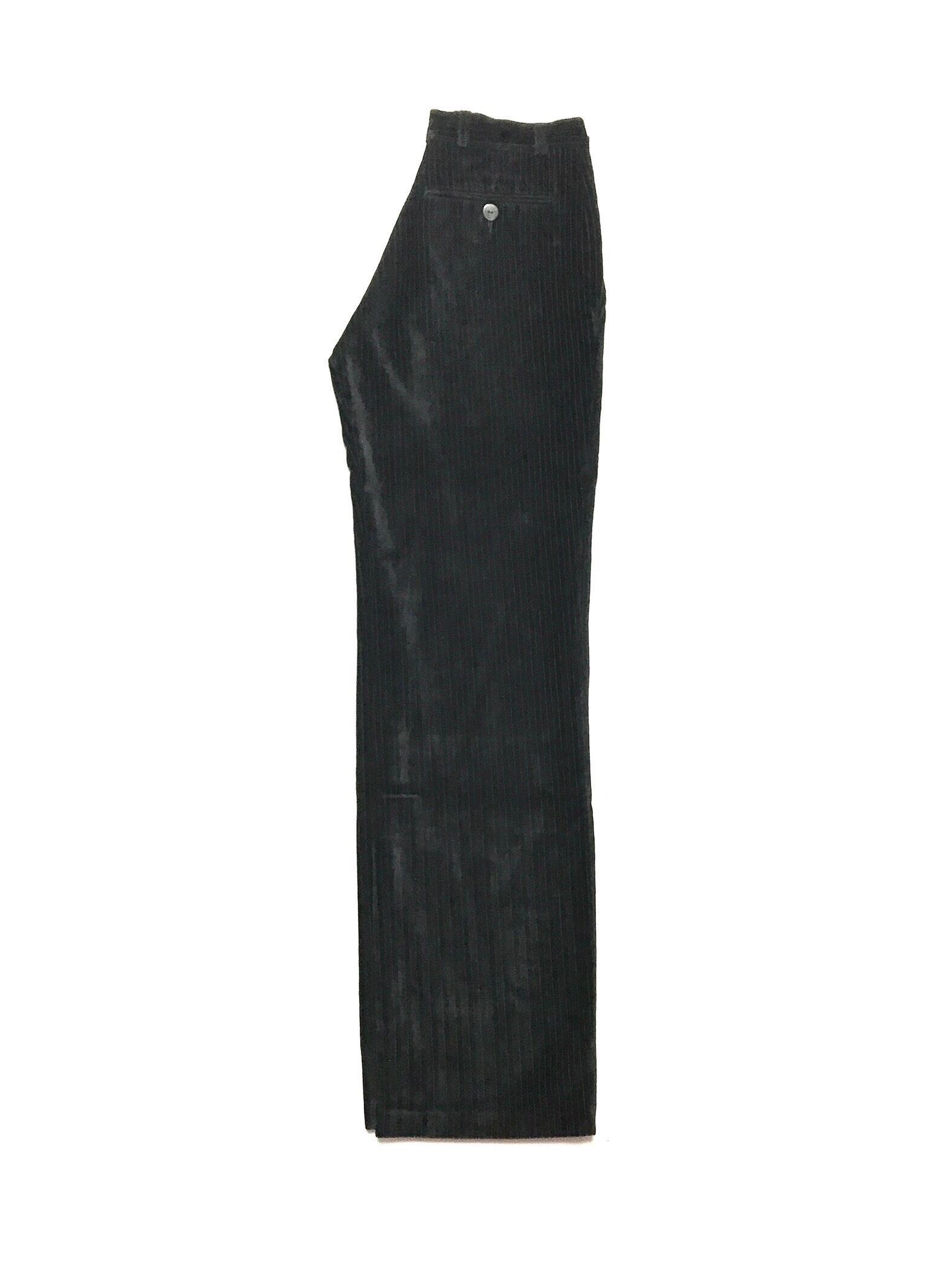 コーデュロイ…と呼んで良いのか、かなりの太畝、それもベルベット然としたラグジュアリーな質感に仕上げられたファブリックで仕立てられたスリムシルエットのパンツ。