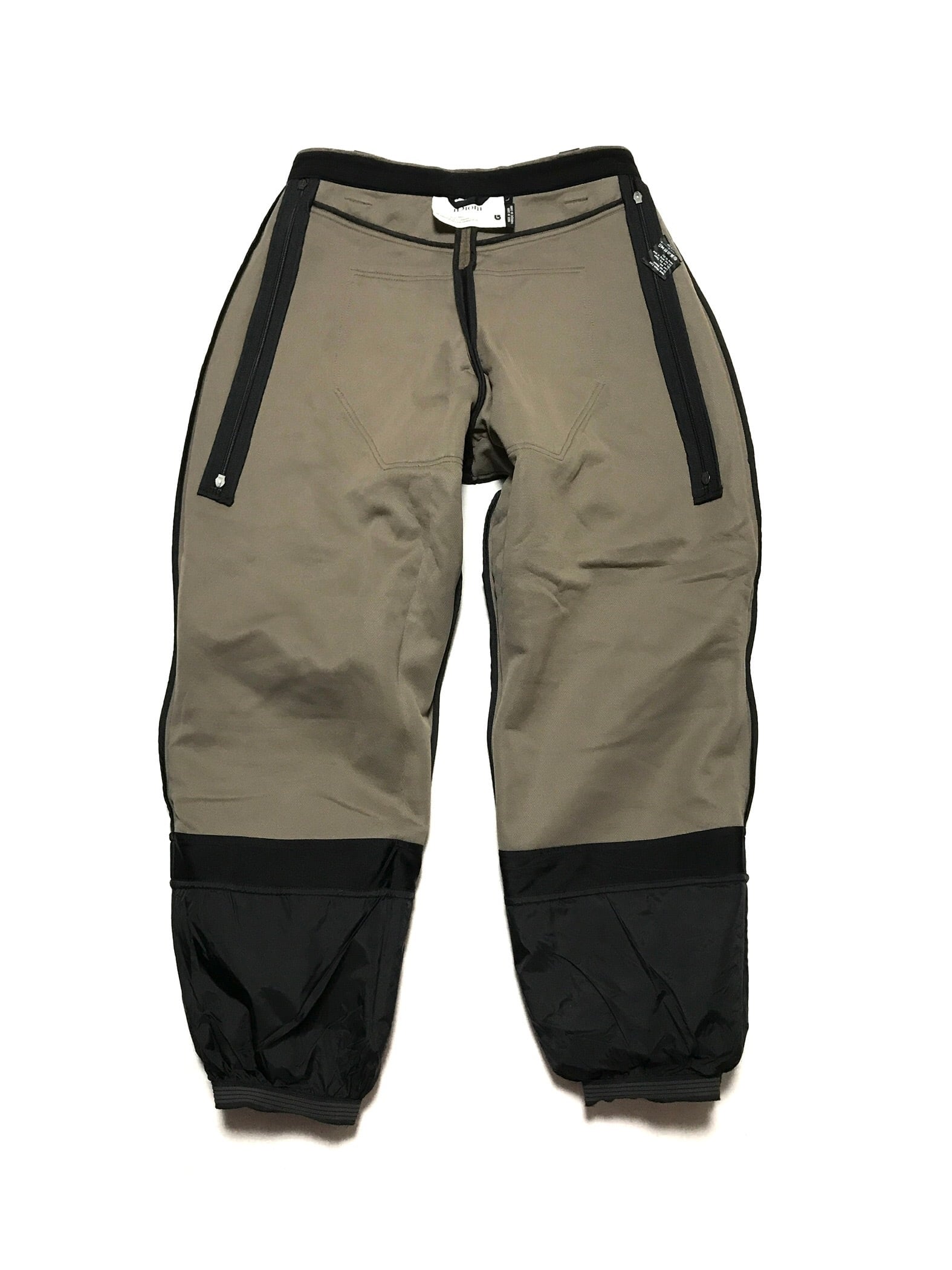 ナイロン製の紗幕を貼り付けた、所謂ボンディングファブリックなのですが、その貼り付けに使われているメンブレン(接着膜)に防風防水の特殊素材(個人的に参照している記事では言及されていないが多分このメンブレンがゴアテックス)を用いることで 外面はタウンウェア、内面はゴリゴリのゲレンデウェア…という構造を成立させています。