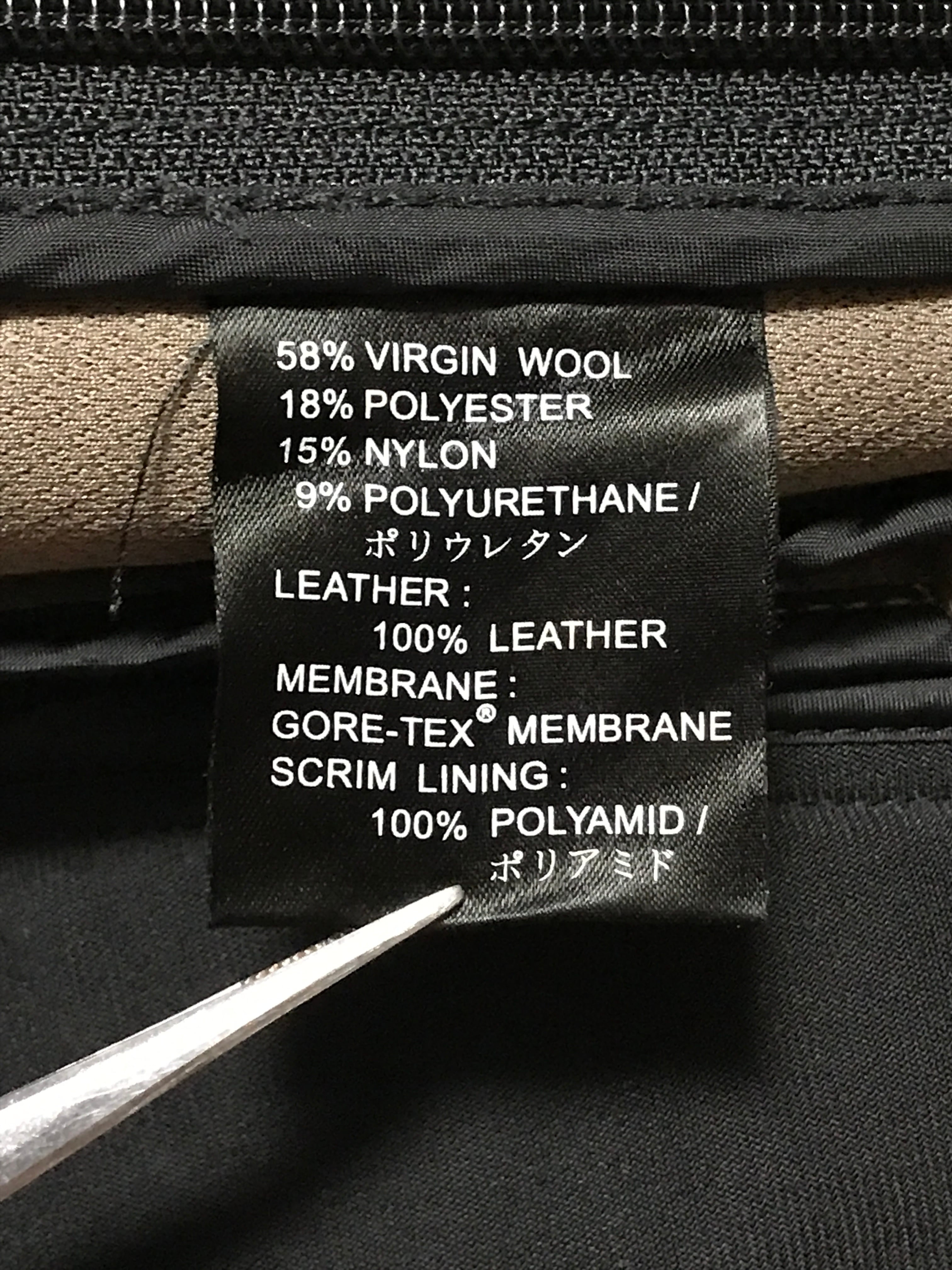 そして部分的に使われているレザー、ここに関しても普通のレザーでは勿論なく、ウールシェルと同じように(恐らくゴアテックスの)メンブレンを貼り付けたゴアテックスレザー。