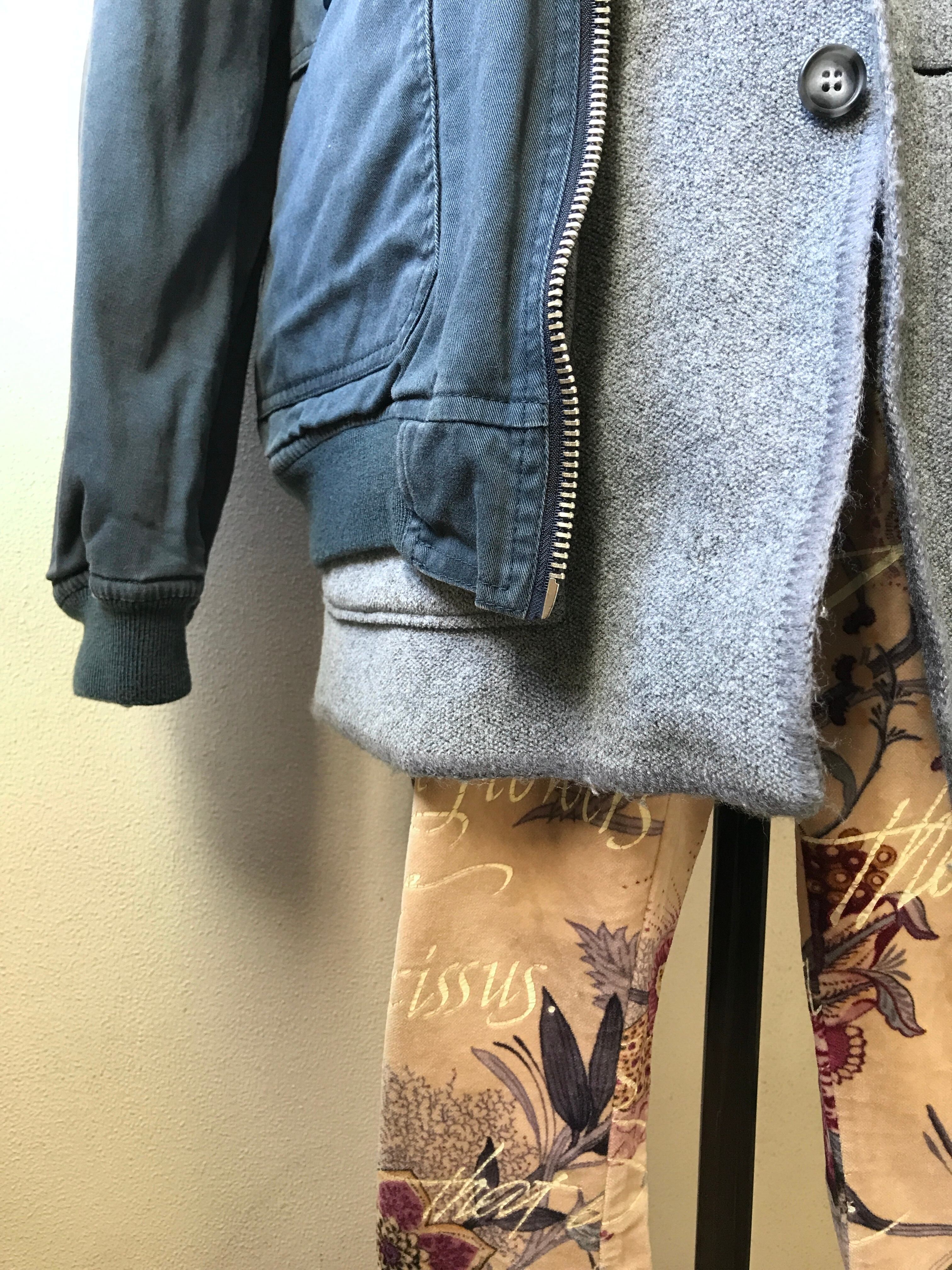 着用時の自然な美しさを支えるのはこの辺りのパタンナーの微妙な匙加減なのですが、あくまで[グラフィックデザインと素材感のミックスで生まれる妙]をこそ前面に打ち出し、こうした美しいパターンメイクはさも当たり前のように静かに洋服を支えます。