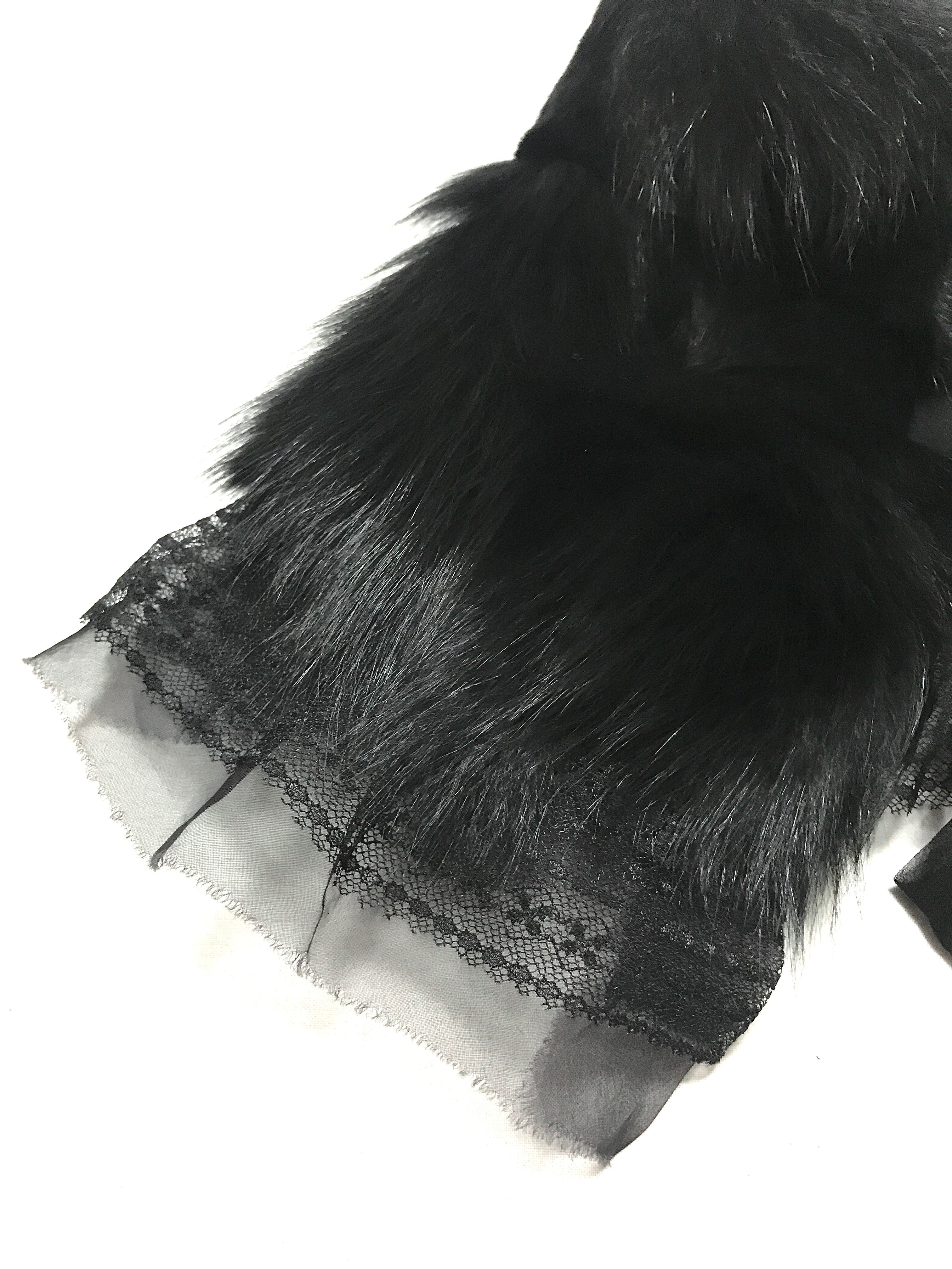 毛足の長いブラックファーと繊細かつ可憐なレースを組み合わせた大振りな付け襟。