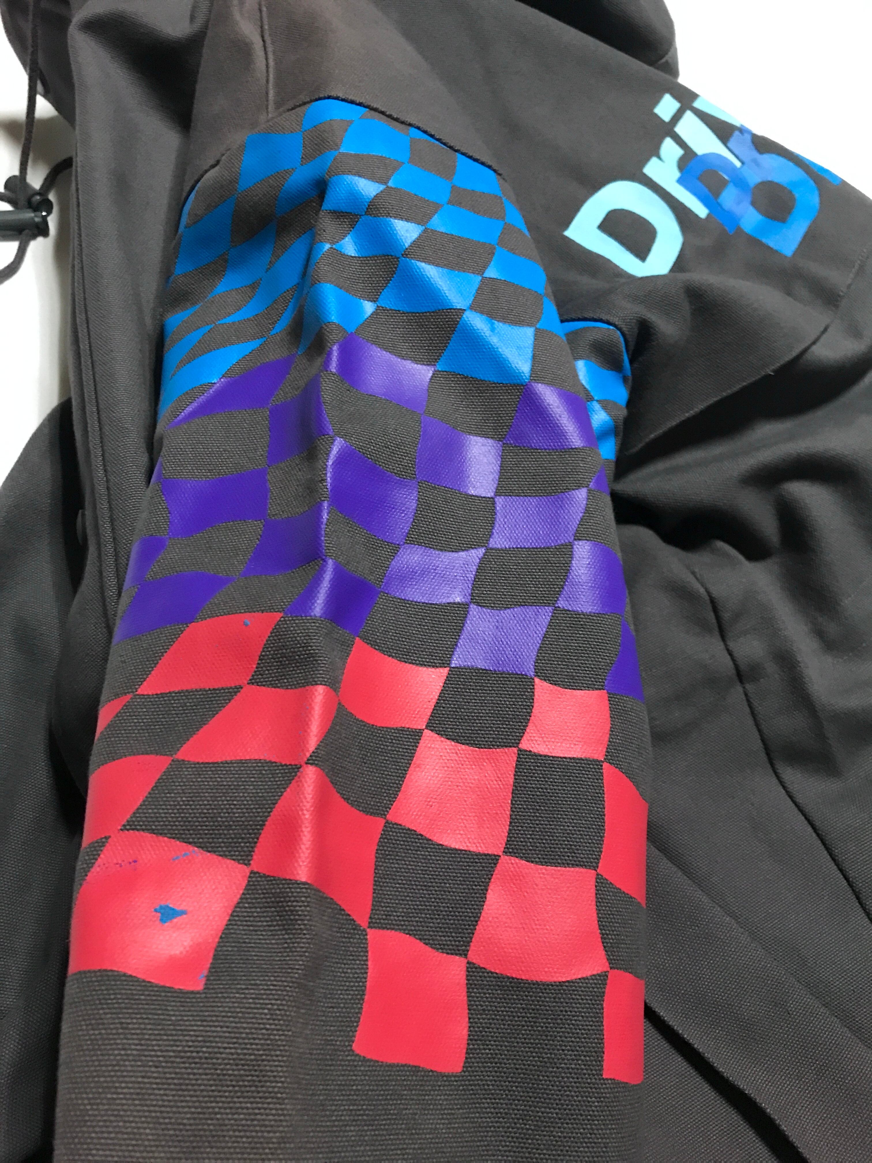 程よい厚みのコットンキャンバスに塗料厚塗りのローファイなプリント。