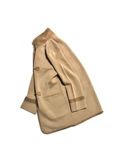スタンドカラーになることによって、このトグルデザインには中国のトライブ感も少し乗り、全体の品格に満ちたビジュアルにエキゾチックなエッセンスが混じります。