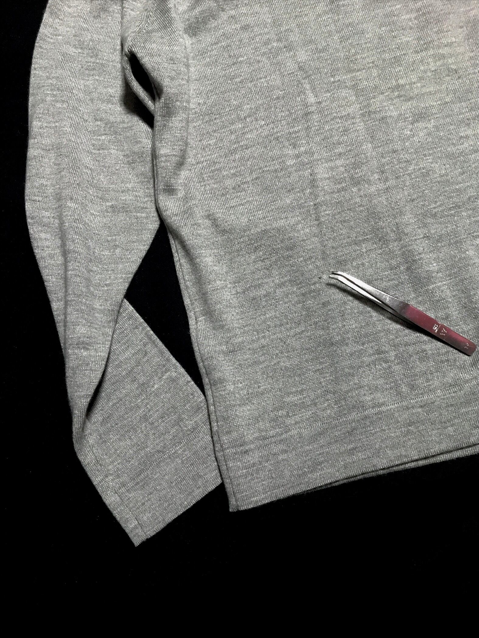 シルクとカシミヤが混ざった軽い灰色のウールセーターです。