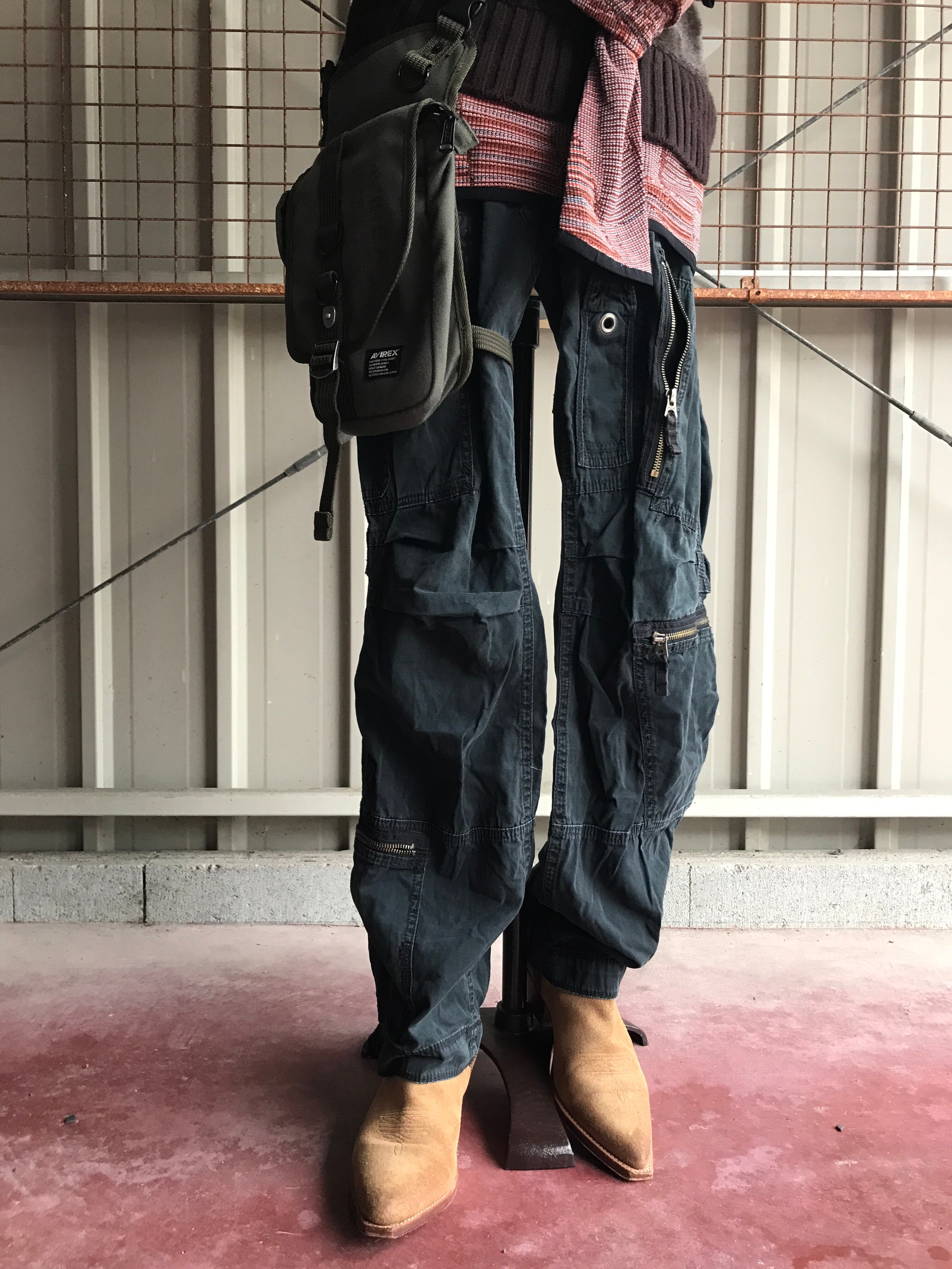ミリタリーど真中のオリーブという色選定によってそのギミックに感じるフェテッシュな魅力が機能美とラギッドネス由来のものであることに気づかされるという具合。