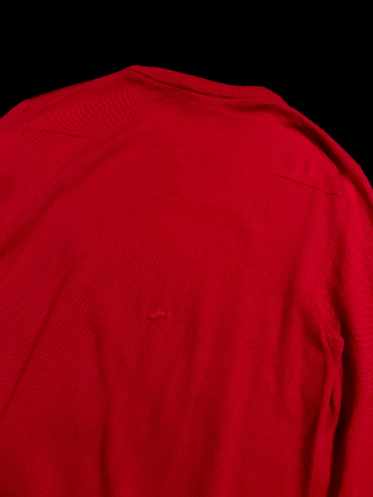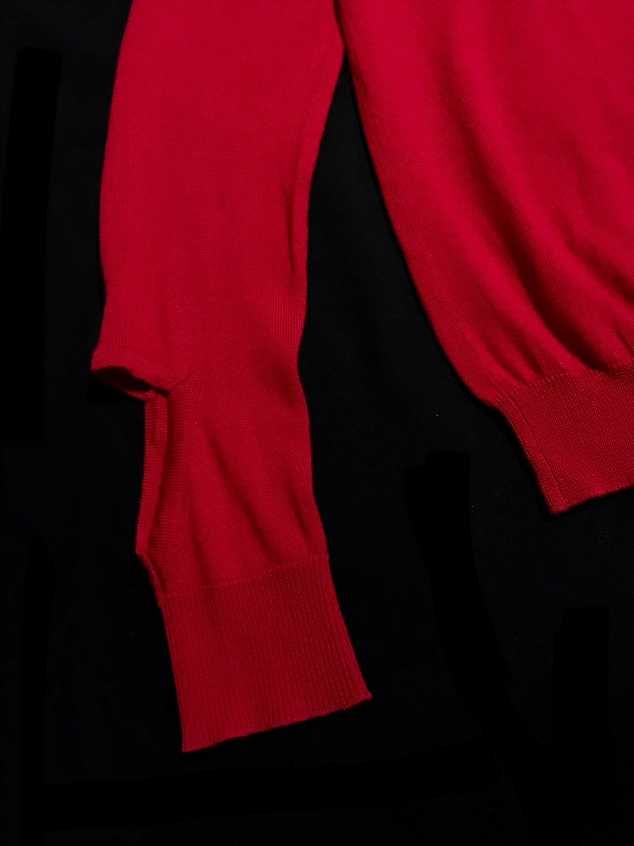 また、袖口のリブニット部分には微細な小穴がちらほら。