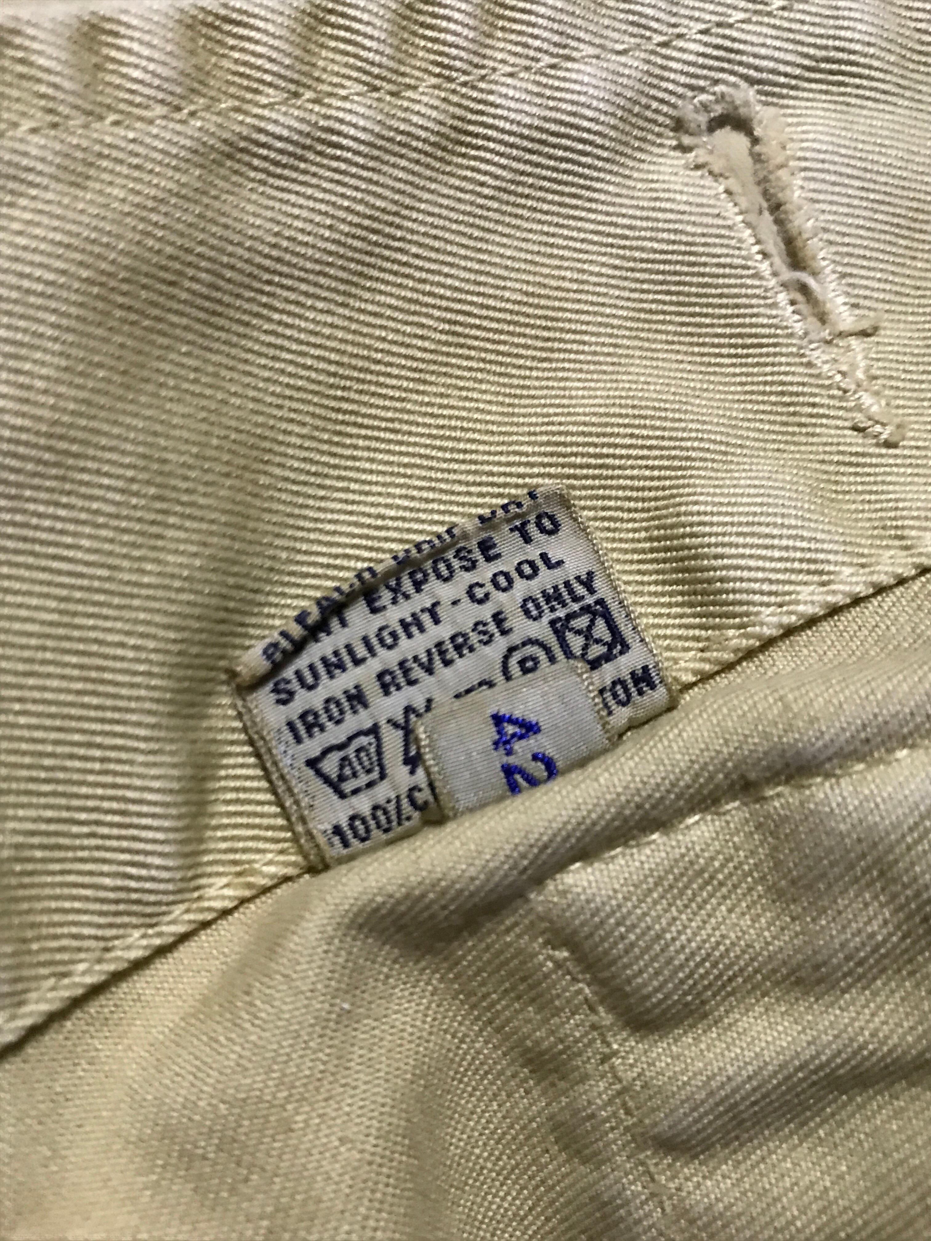気になるような深刻なものはありませんが、経年に伴うちまちまとしたアタリがとても格好良く映えるサンドベージュでのコットンツイル。