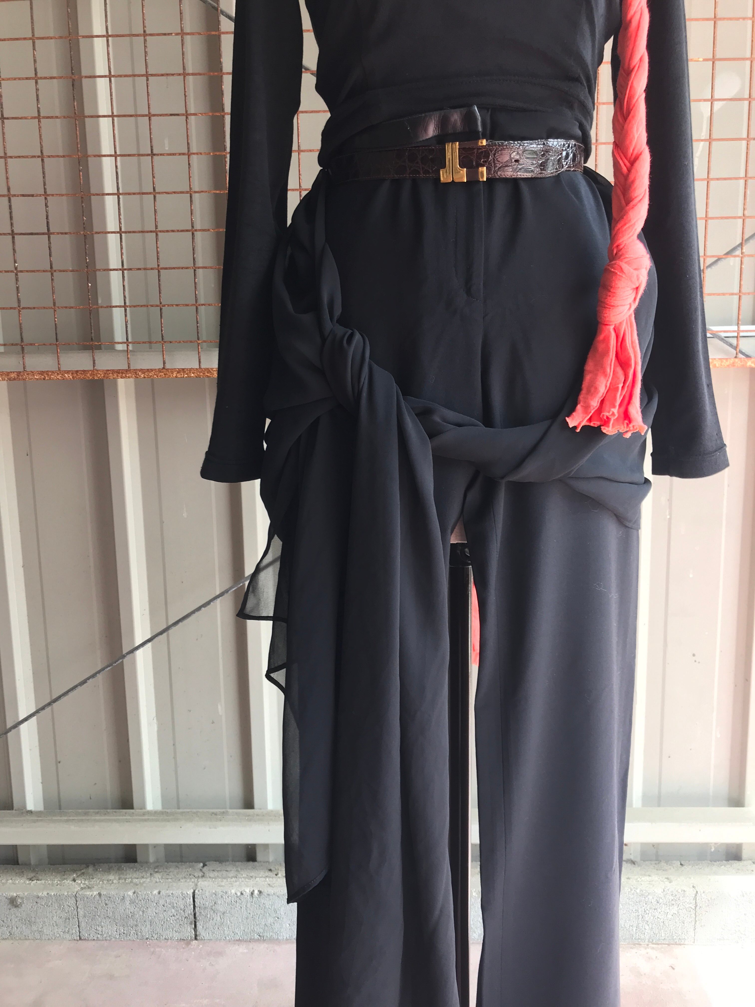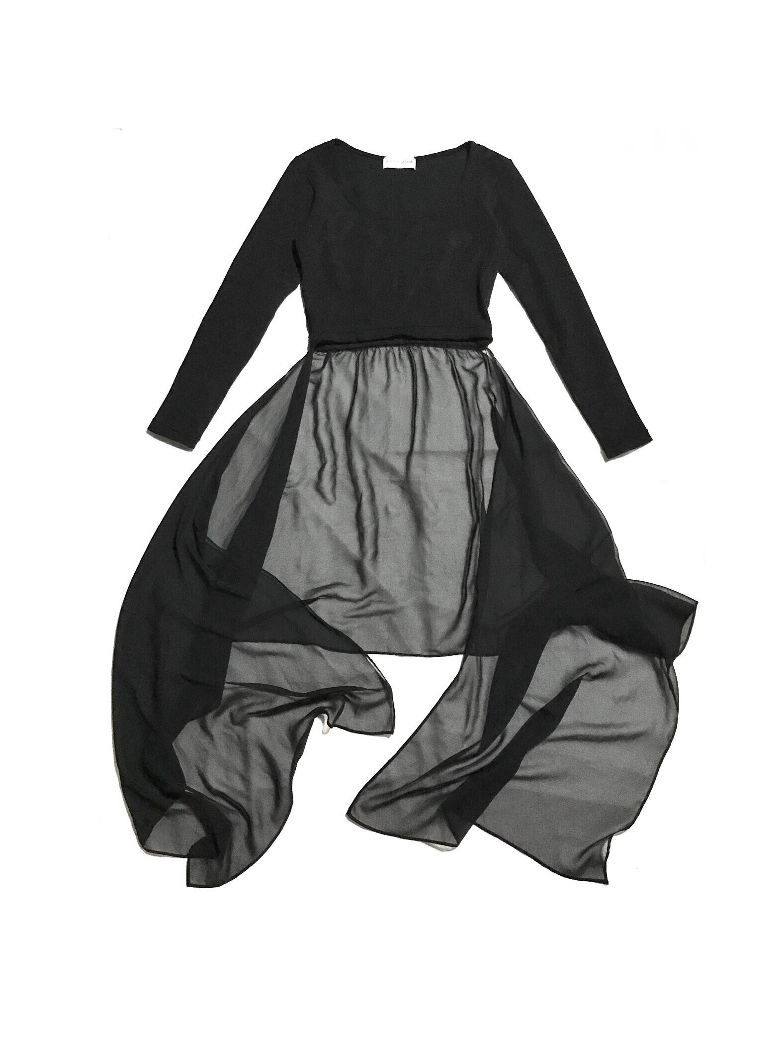 ストレッチの効いたタイトなL/Sトップスに、特大のトレーンが付いたデザイン。