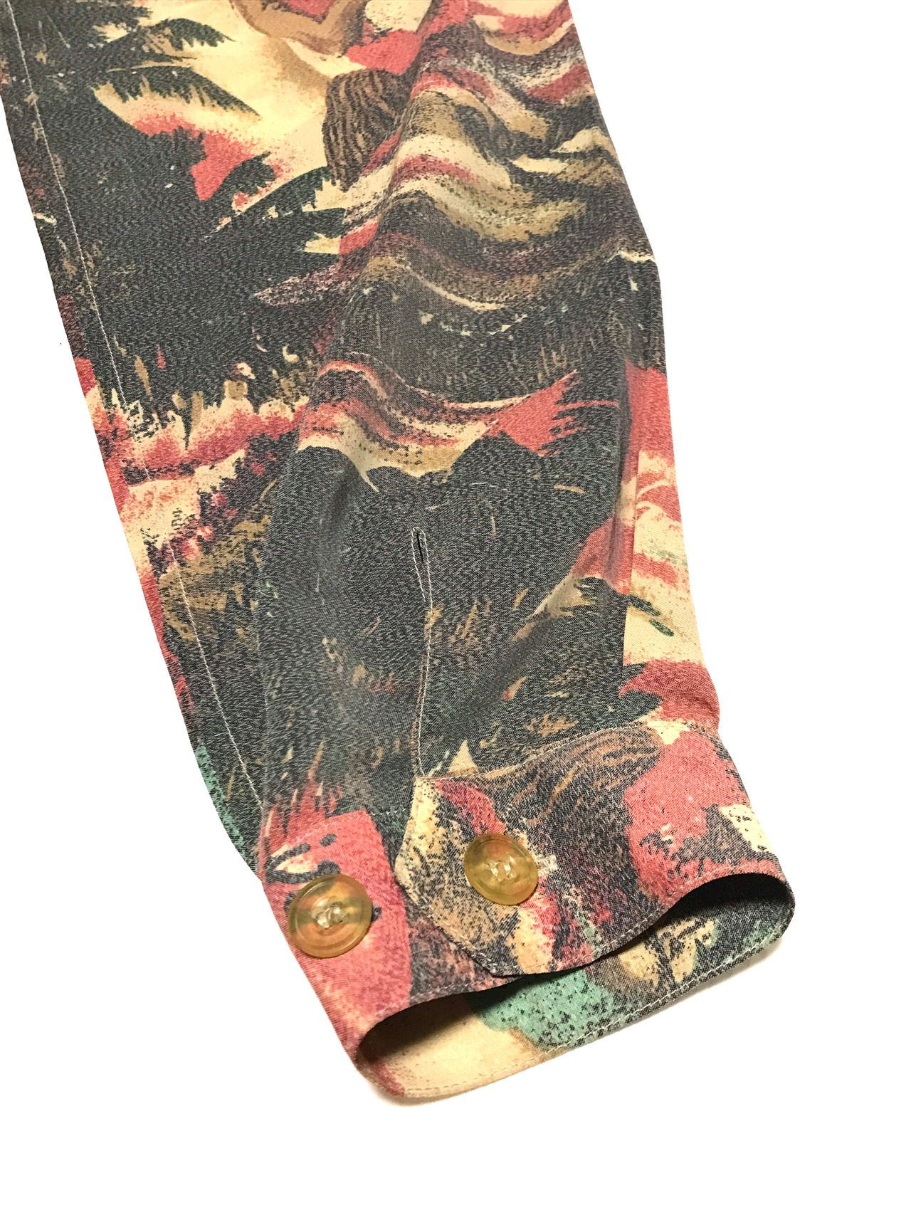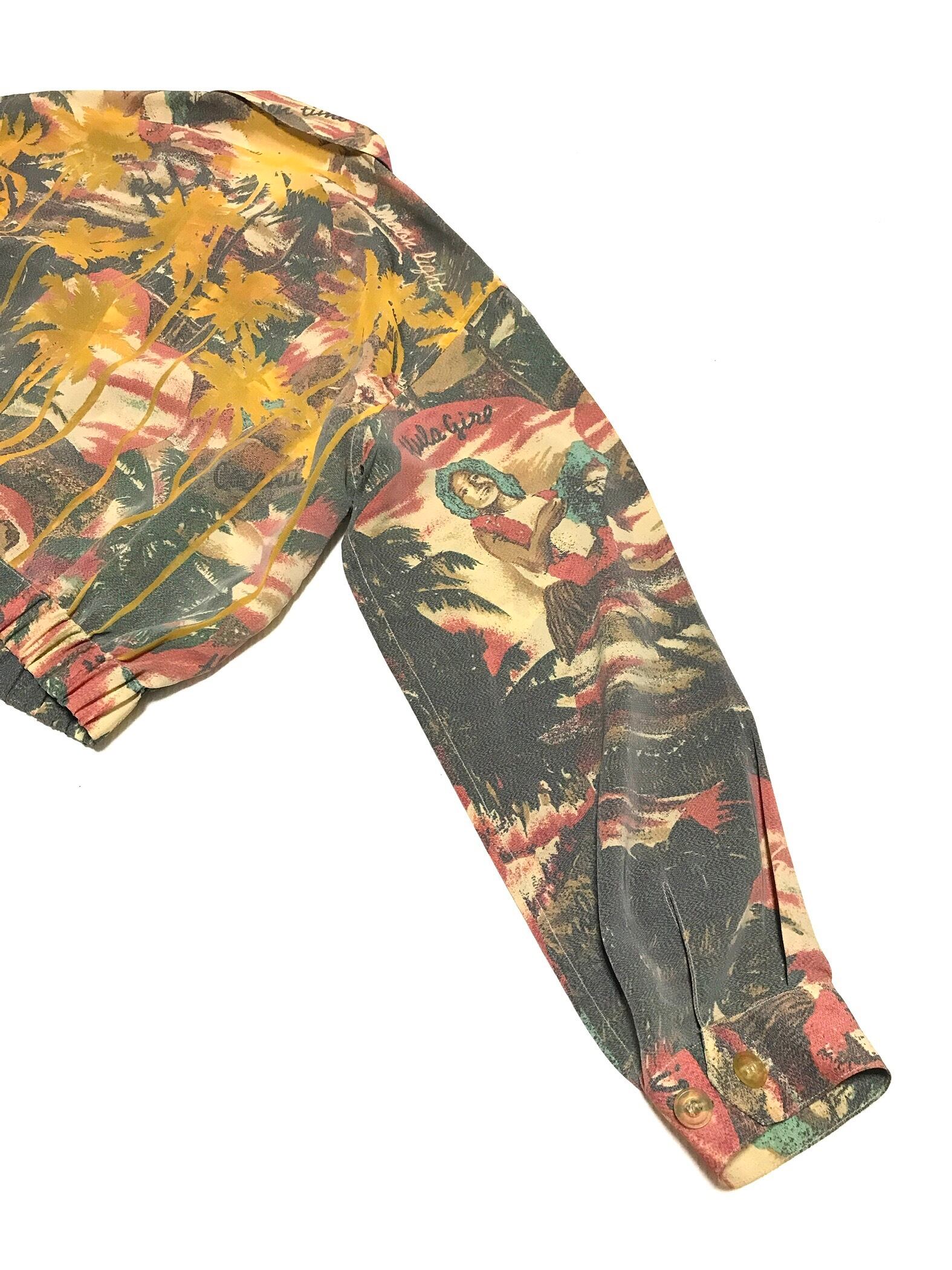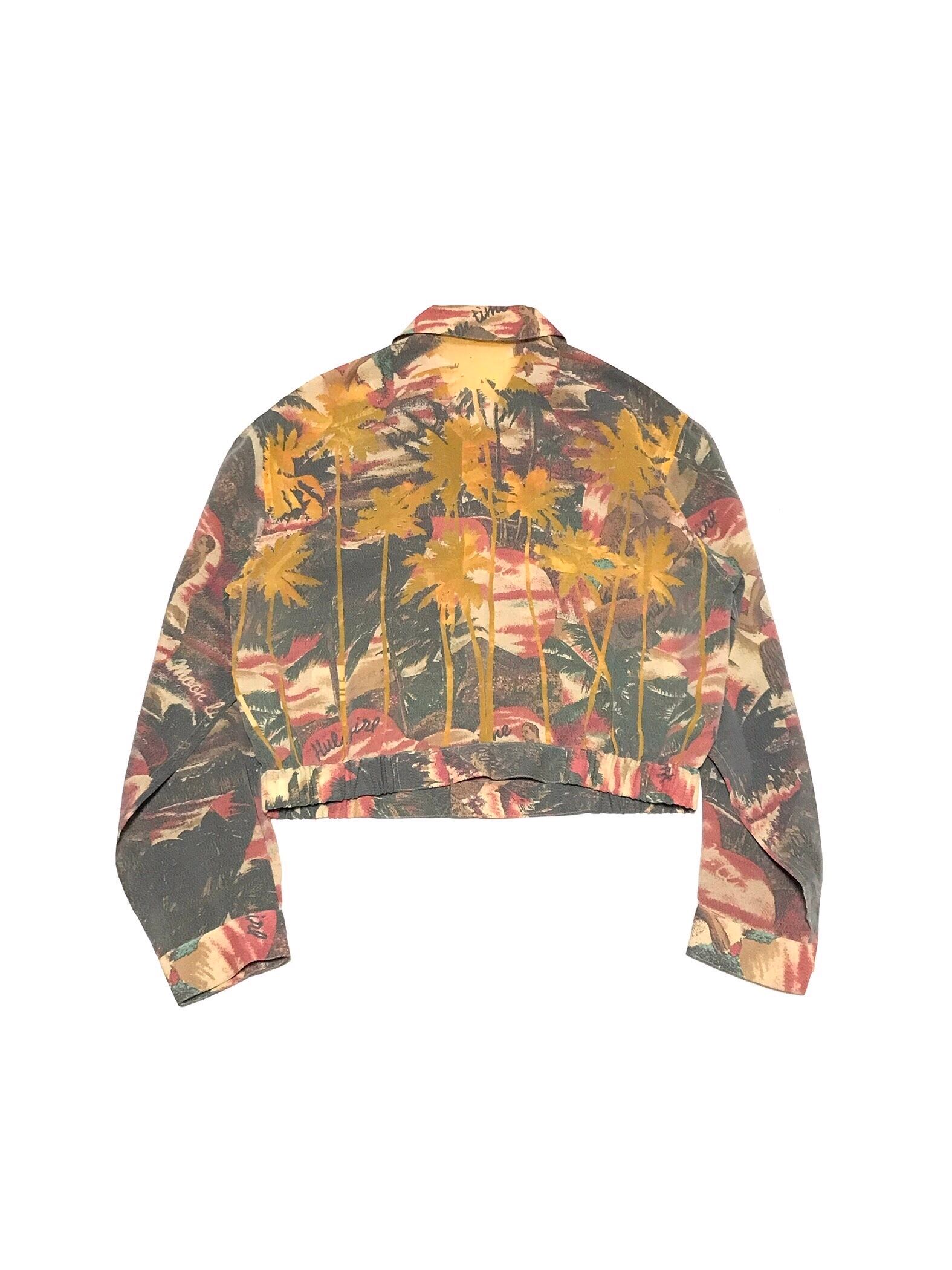 背面に配置された椰子の木達のみを半透明に透かした生地デザイン。