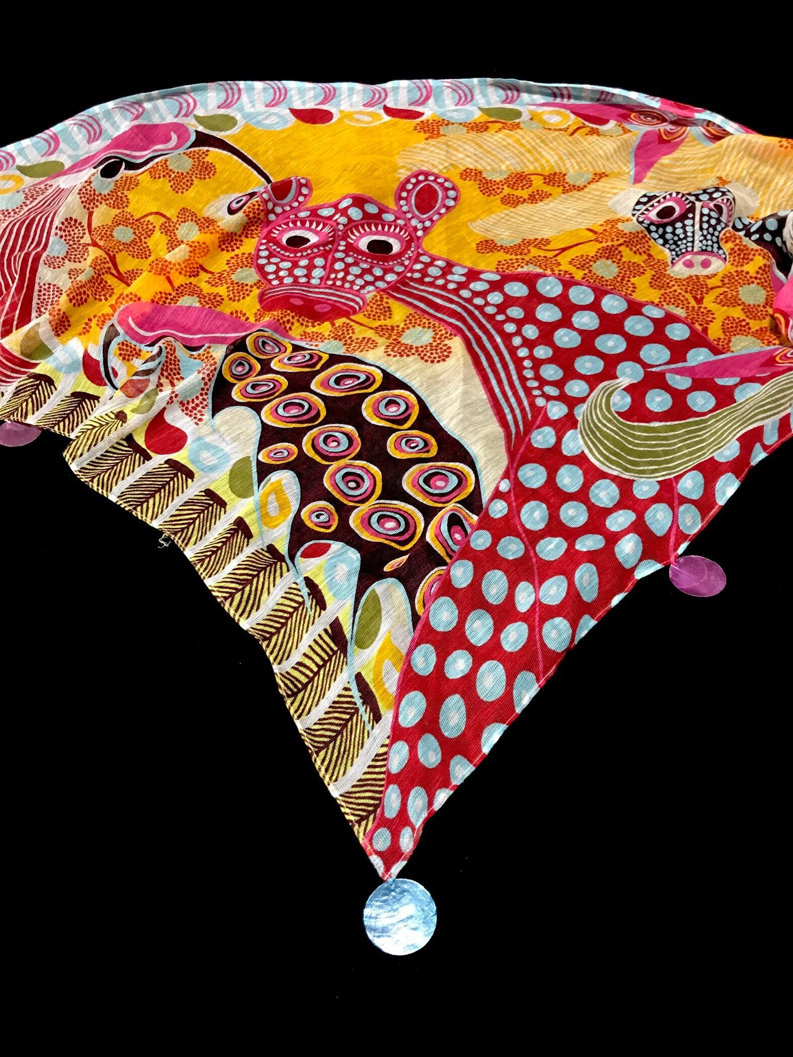 これ四角形を2つ折りにしているのではなく、もともと二等辺三角形のスカーフです。