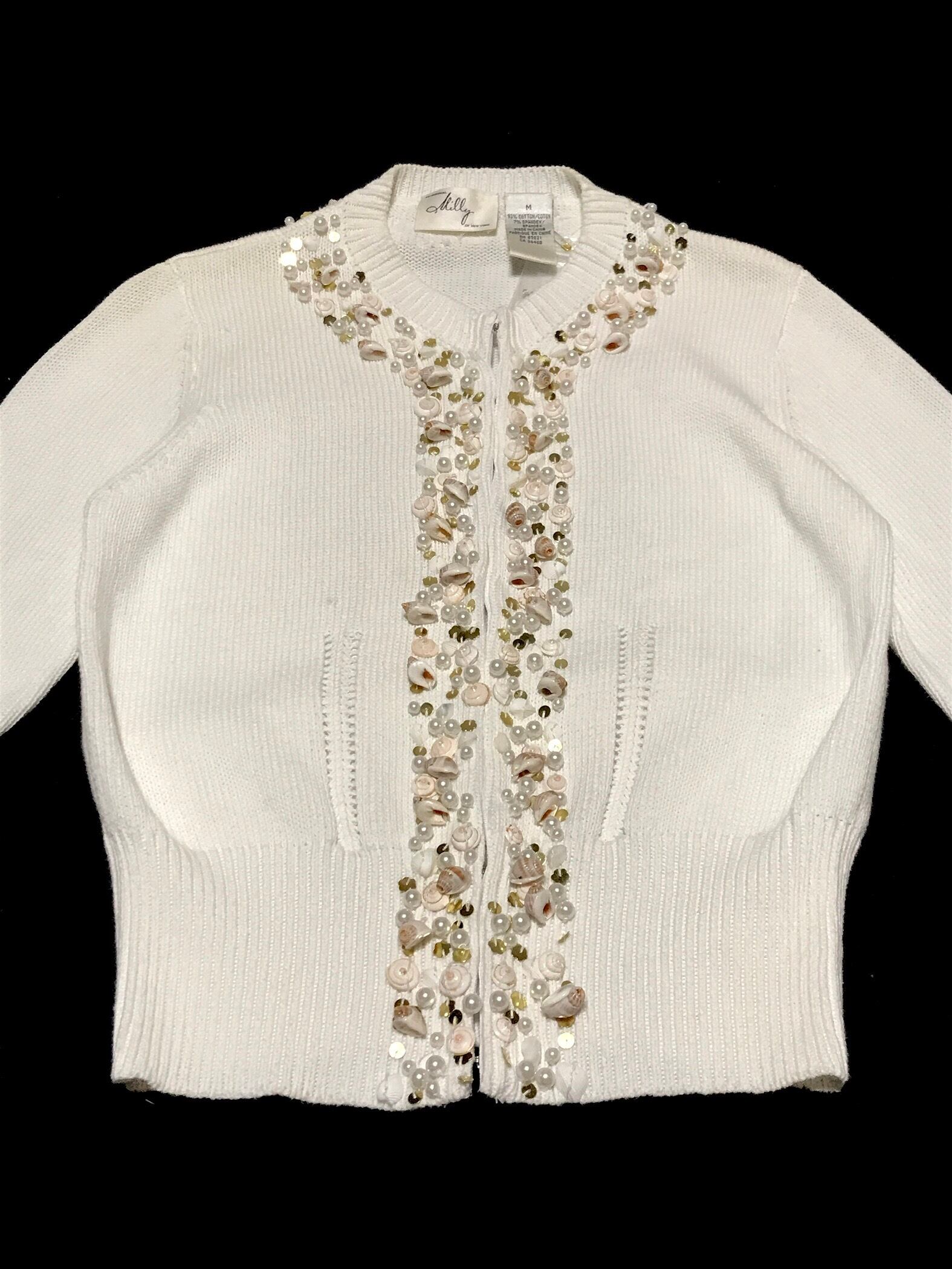 MILLY (OLD) Real Shells Design Cotton Knit Cardigan
